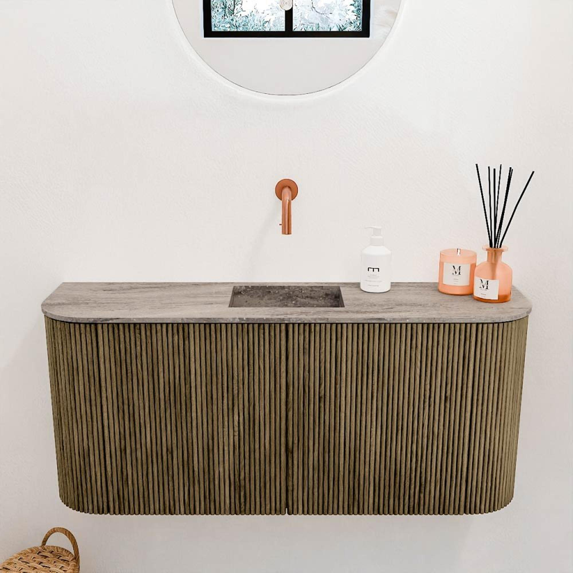 Met dit prachtige meubel geef je jouw badkamer een directe upgrade naar een stijlvolle en praktische ruimte. De zachte rondingen aan zowel de linker- als rechterkant zorgen voor een uniek en modern design dat direct in het oog springt. Dankzij de neutrale kleur Dusk past dit meubel moeiteloos in diverse badkamerstijlen, van strak en minimalistisch tot warm en natuurlijk. De bijbehorende wastafel, centraal gepositioneerd en zonder kraangat, biedt je de vrijheid om zelf de kraan te kiezen die het beste bij jouw wensen past. Zo creëer je een badkamer die niet alleen functioneel is, maar ook precies aansluit bij jouw persoonlijke smaak. Dit meubel is een perfecte balans tussen elegantie en gebruiksgemak, waardoor elke ochtend en avond een plezier wordt.