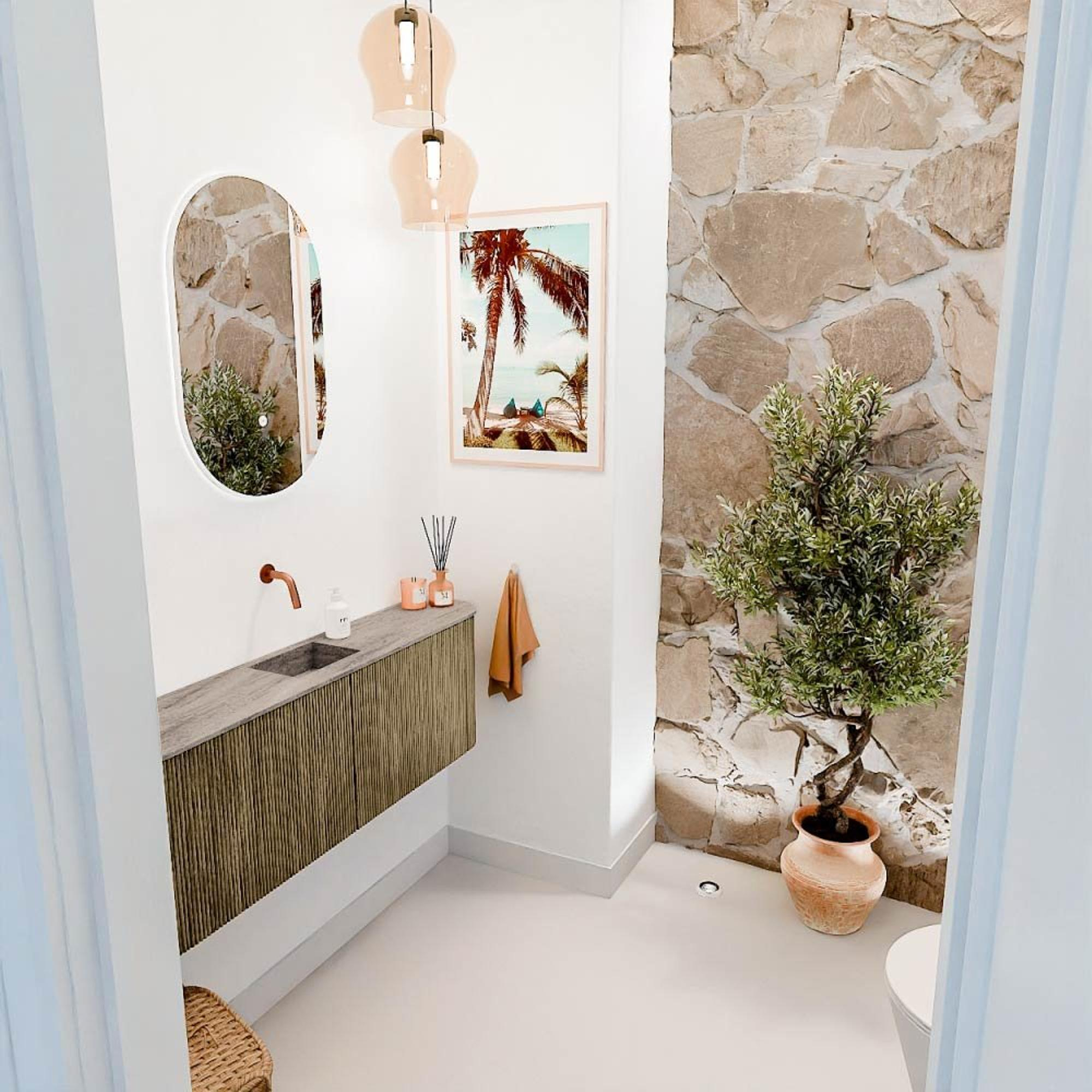 Transformeer je badkamer met dit prachtige meubel dat niet alleen praktisch is, maar ook een warme, natuurlijke uitstraling geeft. Dankzij de subtiele rondingen aan beide zijden en de elegante kleur Dusk krijgt jouw ruimte een zachte, uitnodigende sfeer. Het meubel is ontworpen om optimaal te functioneren zonder in te leveren op stijl. Met de centraal geplaatste wastafel zonder kraangat creëer je alle vrijheid om zelf de kraan te kiezen die perfect bij jouw stijl en wensen past. Dit meubel brengt rust en balans in je badkamer, terwijl het tegelijkertijd een hoogwaardig en duurzaam karakter uitstraalt. Zo geniet je elke dag van een badkamer die niet alleen mooi oogt, maar ook prettig en efficiënt in gebruik is.