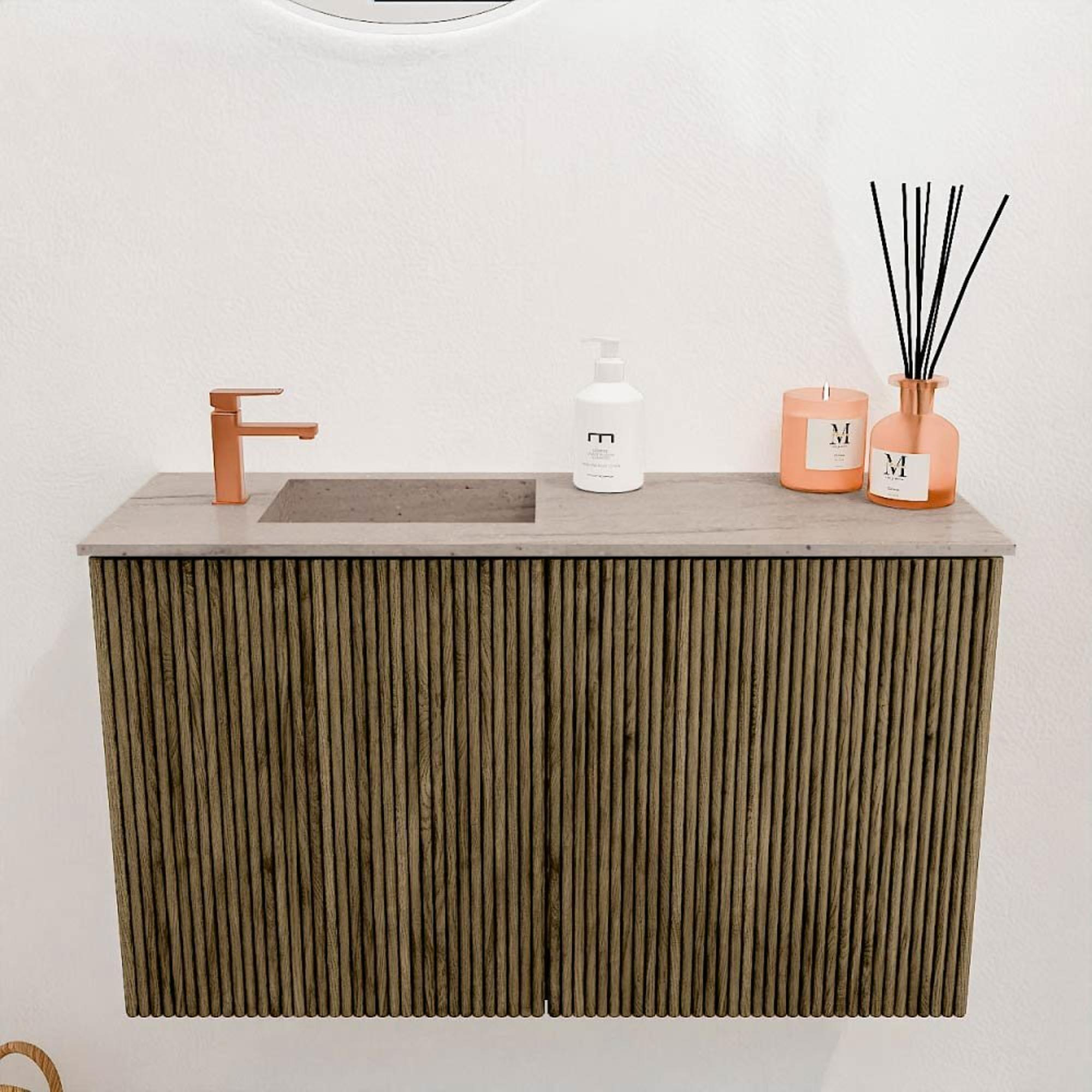 De natuurlijke houttinten in de kleur Dusk brengen een warme, uitnodigende sfeer in je badkamer. Het meubel combineert een tijdloos design met moderne accenten, zoals het verticale ribbelpatroon, waardoor het een echte eyecatcher wordt. Door het subtiele kleurgebruik en de hoogwaardige afwerking past dit meubel moeiteloos bij verschillende badkamerstijlen, van klassiek tot eigentijds. Zo creëer je een harmonieuze ruimte waarin je elke dag met plezier begint.