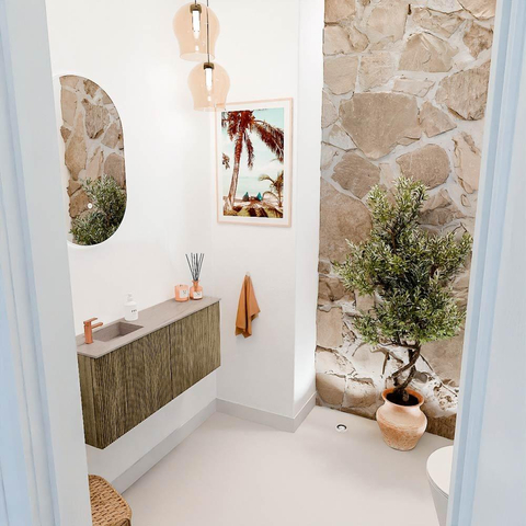 De warme, diepe kleur Dusk geeft het meubel een tijdloze en elegante uitstraling die moeiteloos aansluit bij verschillende interieurstijlen. Of je nu houdt van modern minimalisme of juist een warme, natuurlijke sfeer wilt creëren, dit meubel past zich aan jouw wensen aan. De wastafel in kleur Saba voegt een subtiel accent toe, waardoor het geheel een unieke en verfijnde look krijgt. Met dit meubel haal je een echte blikvanger in huis die jouw badkamer direct een luxe uitstraling geeft.