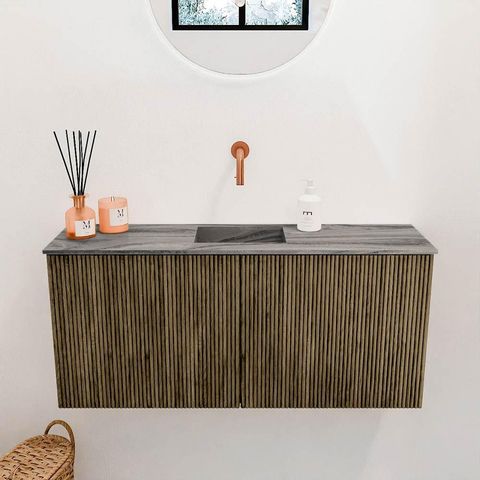 - Wastafelmodel Faye in kleur Sombra (grijs), centraal geplaatst zonder kraangat