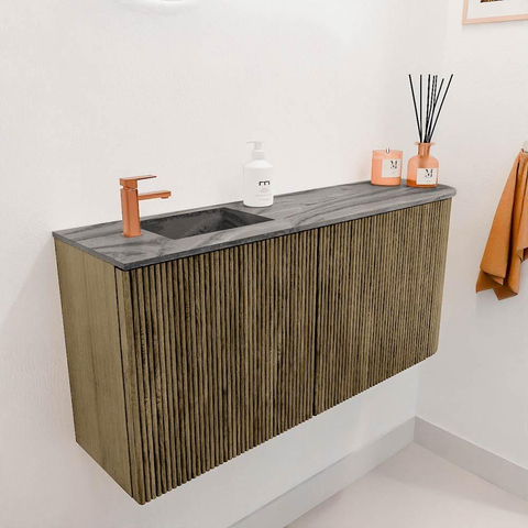 De elegante ronding aan de rechterzijde geeft het meubel een unieke en moderne uitstraling. De warme kleur Dusk zorgt voor een tijdloze sfeer die moeiteloos aansluit bij diverse badkamerinterieurs. De verticale groeven in het eikenhout voegen een subtiele textuur toe, waardoor het meubel niet alleen mooi oogt, maar ook een tactiele ervaring biedt. Zo creëer je een ruimte die niet alleen functioneel is, maar ook uitnodigt om te ontspannen en te genieten. Met dit meubel kies je voor een design dat zowel klassiek als eigentijds aanvoelt, perfect afgestemd op jouw persoonlijke stijl.