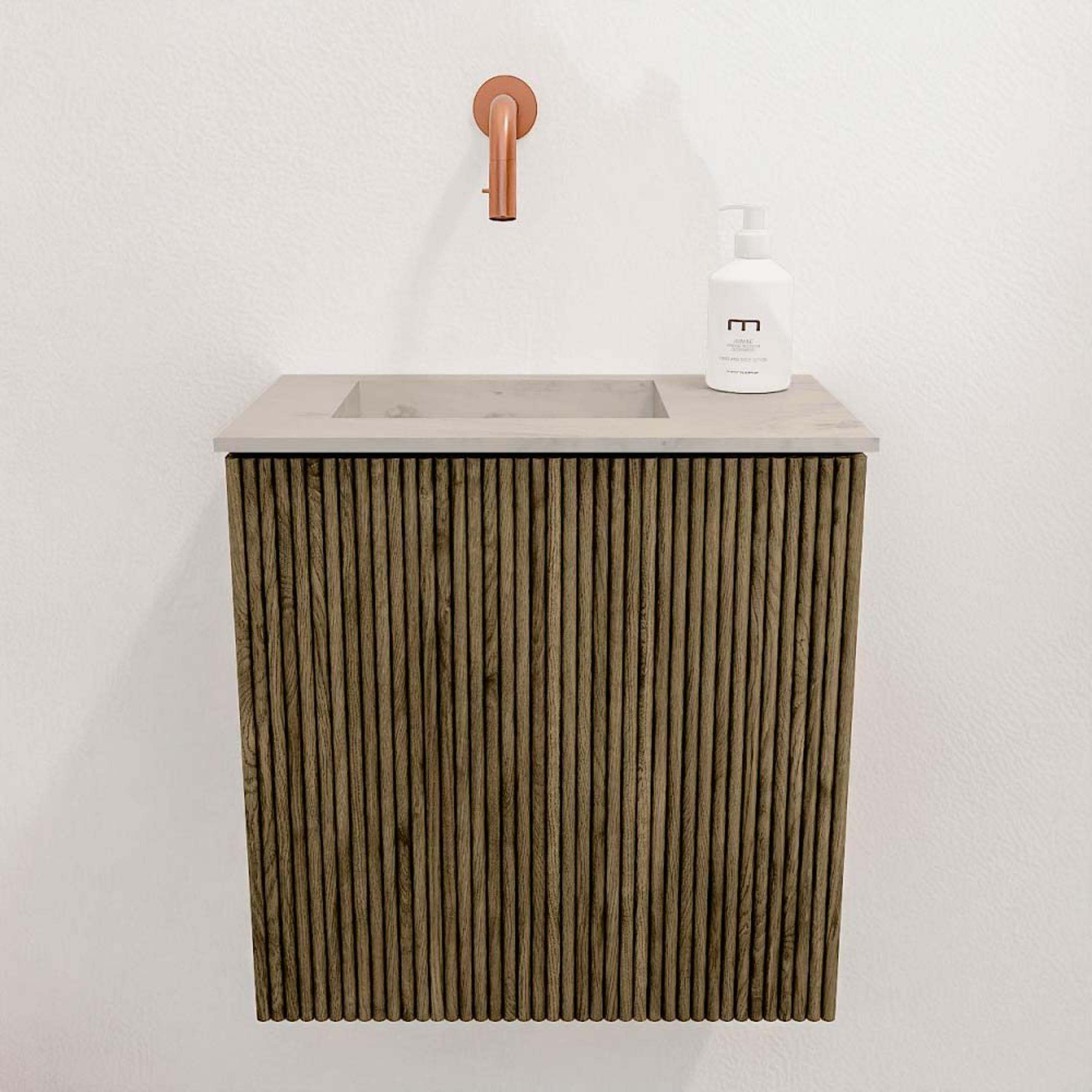 - Kleur Dusk voor het meubel, gecombineerd met een wastafel in Opalo