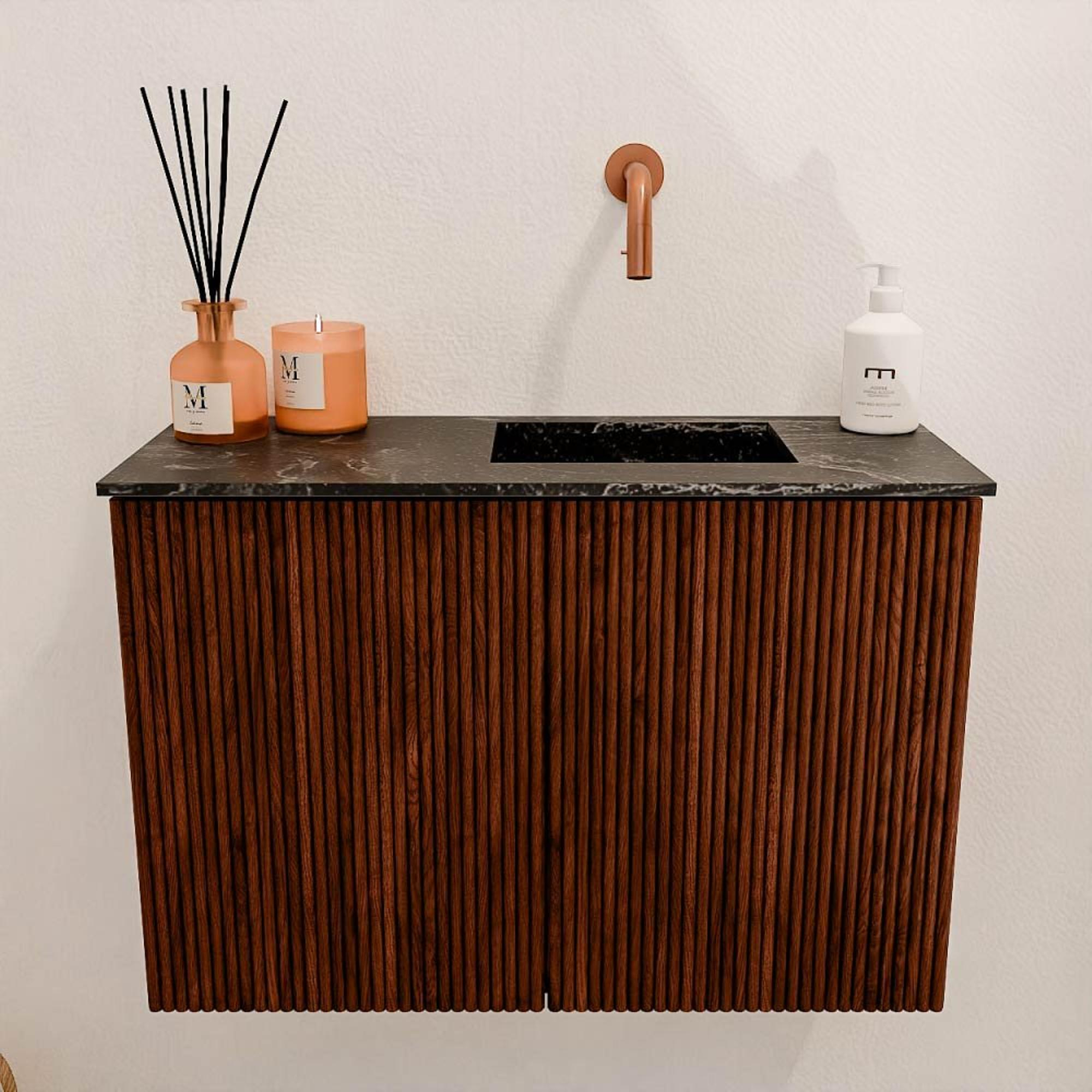 - Wastafelmodel Faye in lava-kleur, 61 cm breed, met rechter positie zonder kraangat