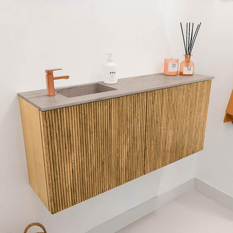 Mondiaz JOYA-DLUX 90cm toiletmeubel - kleur Oak - Wastafel FAYE positie Links 1 kraangat kleur Saba.