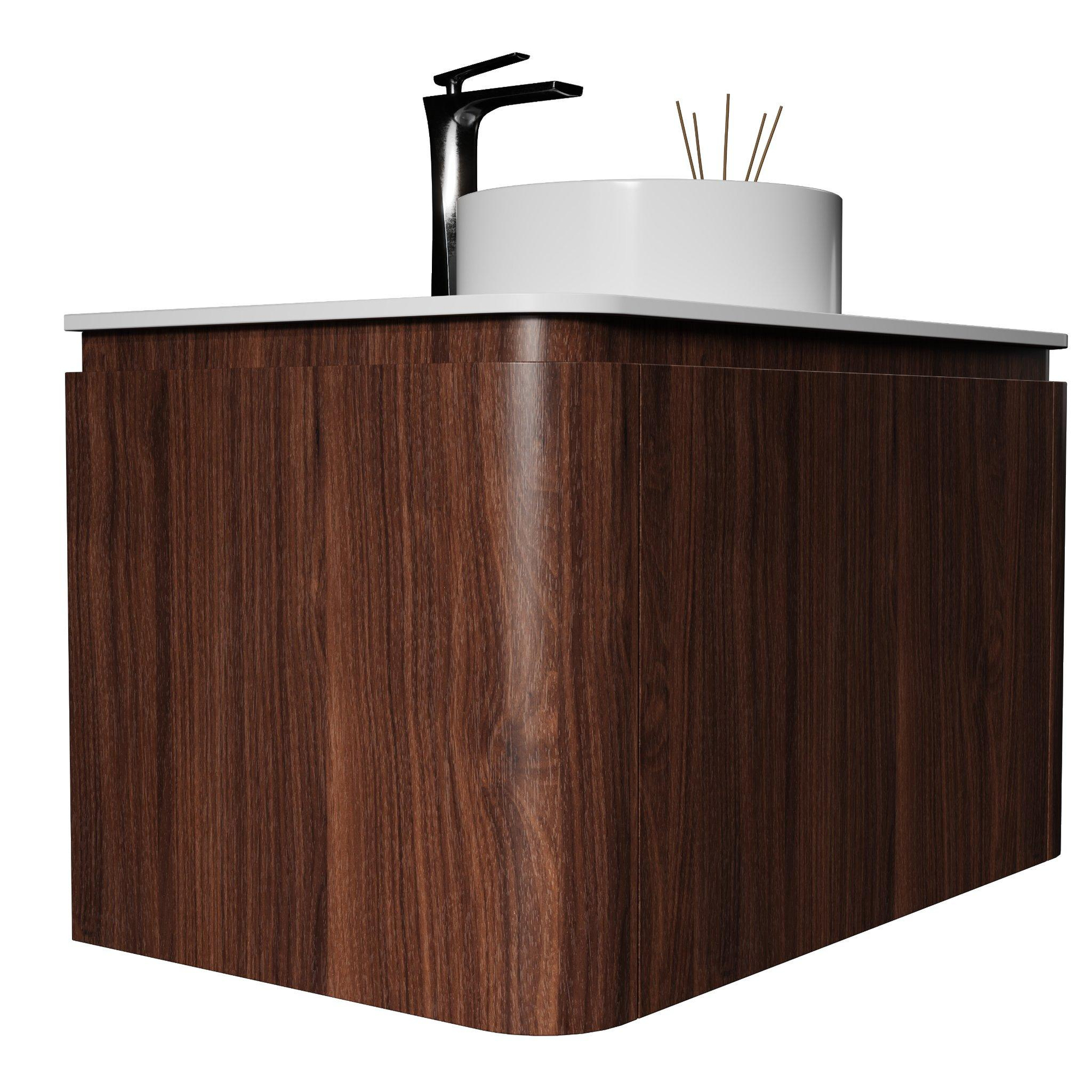 Warme elegantie met afgeronde finesse De Saniclass Terra badmeubelset van 80 cm in kastanje (walnoot) straalt warmte en verfijning uit. Met zijn afgeronde hoeken en diepe houttint voegt dit meubel een vleugje luxe toe aan jouw badkamer. De walnootlook geeft een natuurlijk en stijlvol karakter, terwijl het witte solid surface topblad voor een modern en fris contrast zorgt.