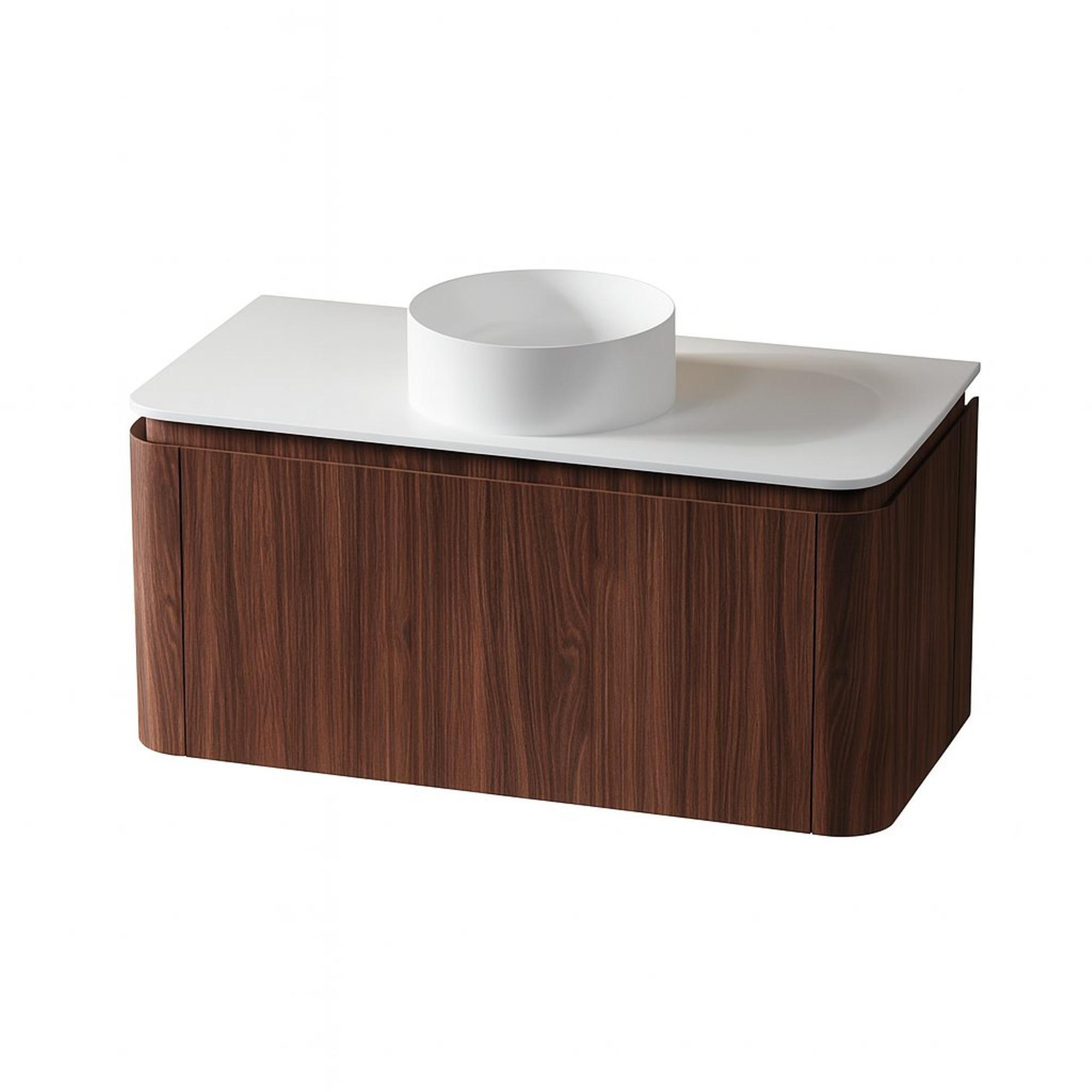 Saniclass Terra Badmeubelset - 100cm - 2 lades - afgeronde hoeken - topblad solid surface - kastanje (walnoot)