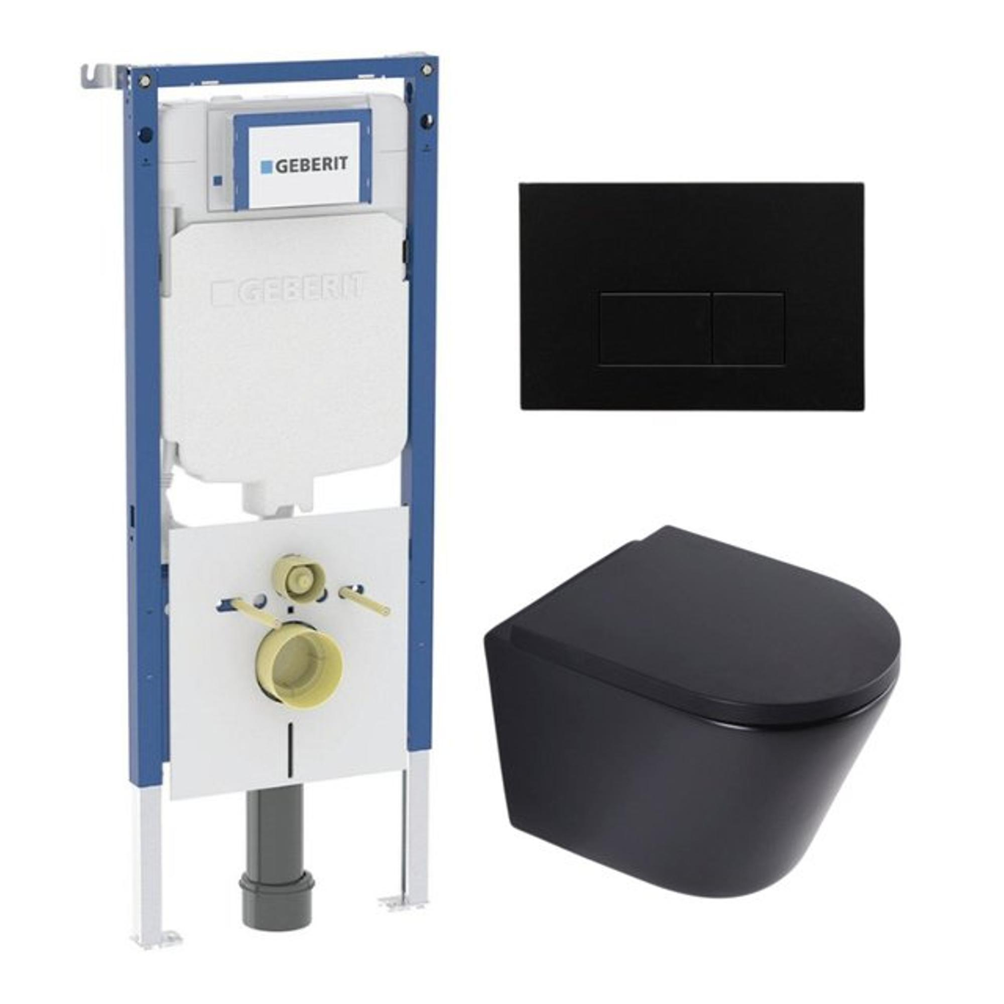 QeramiQ Dely Toiletset - 36.3x51.7cm - diepspoel - rimless - Geberit UP720 inbouwreservoir - softclose toilet zitting 35 mm - kunstof mat zwarte bedieningsplaat - rechthoekige knoppen - mat zwart