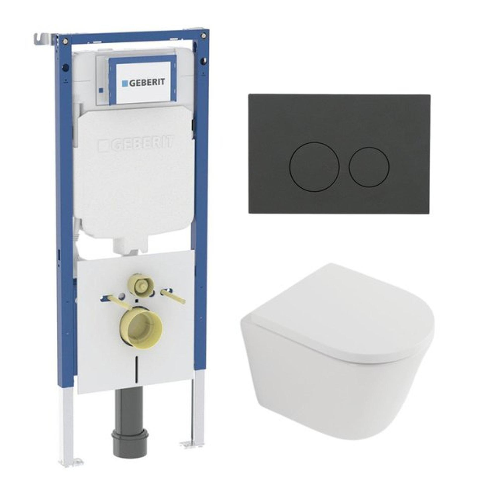 QeramiQ Dely Toiletset - 36.3x51.7cm - diepspoel - rimless - Geberit UP720 inbouwreservoir - softclose toiletzitting - mat antraciet bedieningsplaat - ronde knoppen - mat wit