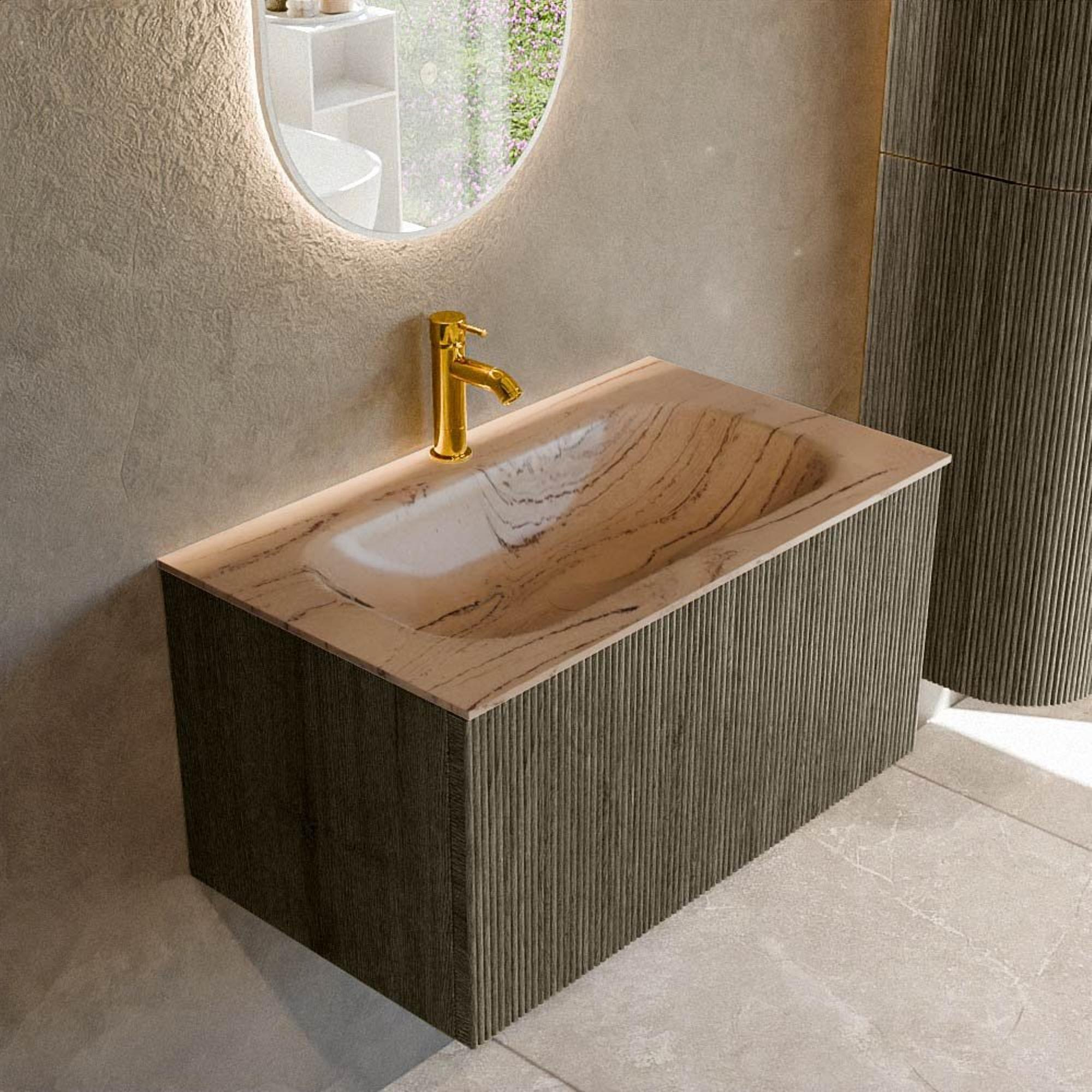 MONDIAZ KURVE-DLUX 80cm badmeubel kleur Shadow met 1 lade en 0 deuren. Wastafel BIG SMALL Midden 1 kraangat Arena.