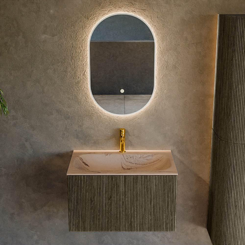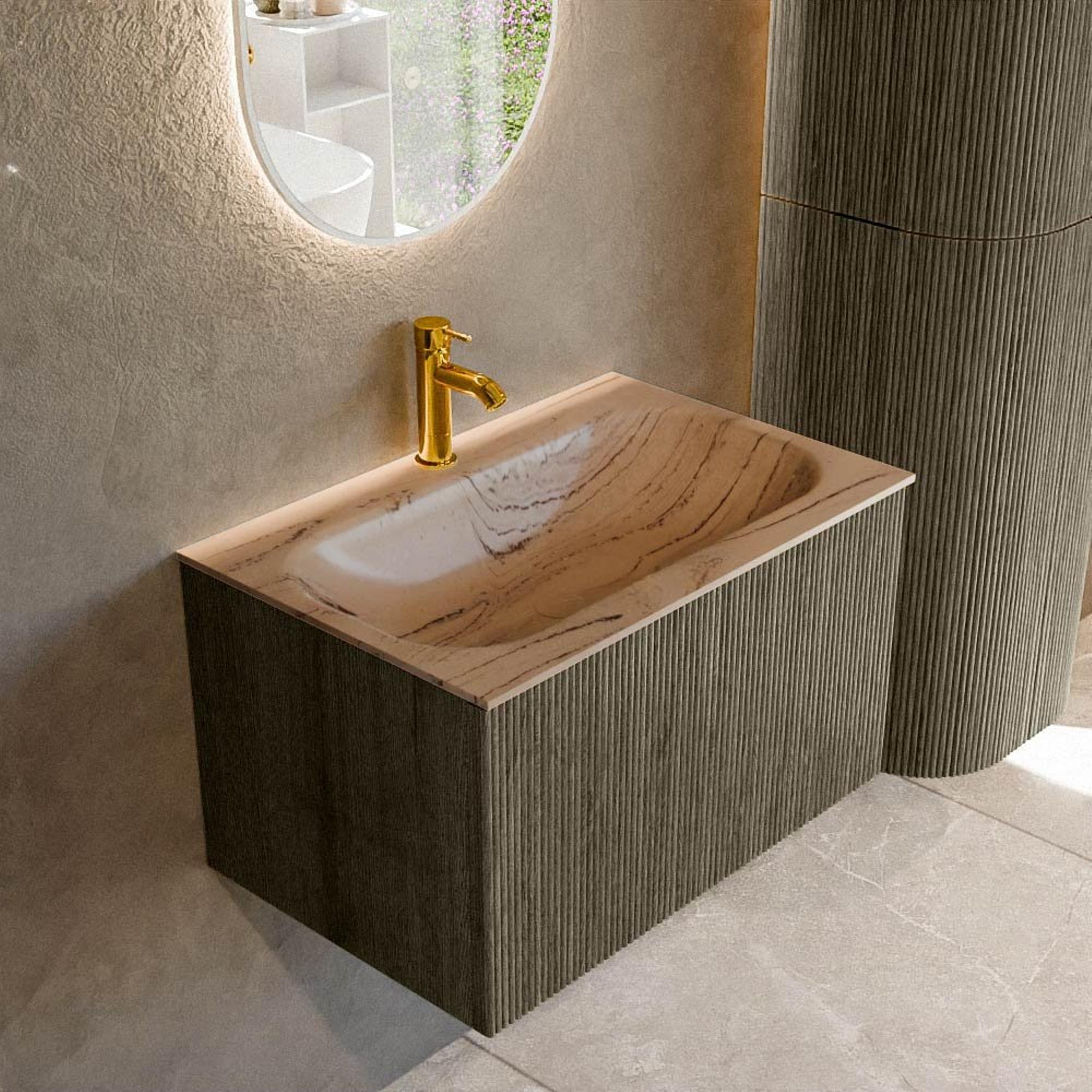 MONDIAZ KURVE-DLUX 70cm badmeubel kleur Shadow met 1 lade en 0 deuren. Wastafel BIG SMALL Midden 1 kraangat Arena.