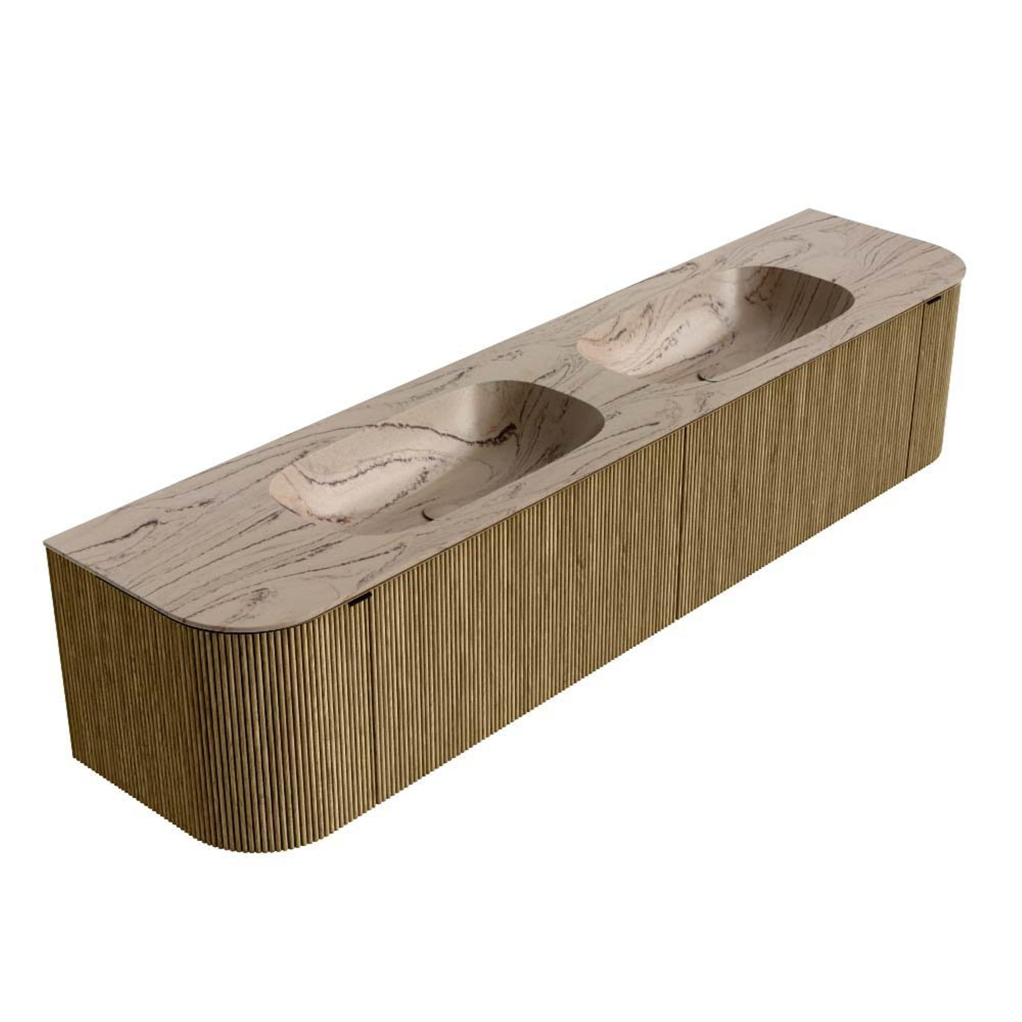 MONDIAZ KURVE-DLUX 200cm badmeubel ronding Links + Rechts kleur Dusk met 2 lades en 2 deuren. Wastafel STOR SMALL Dubbel zonder kraangat Arena.
