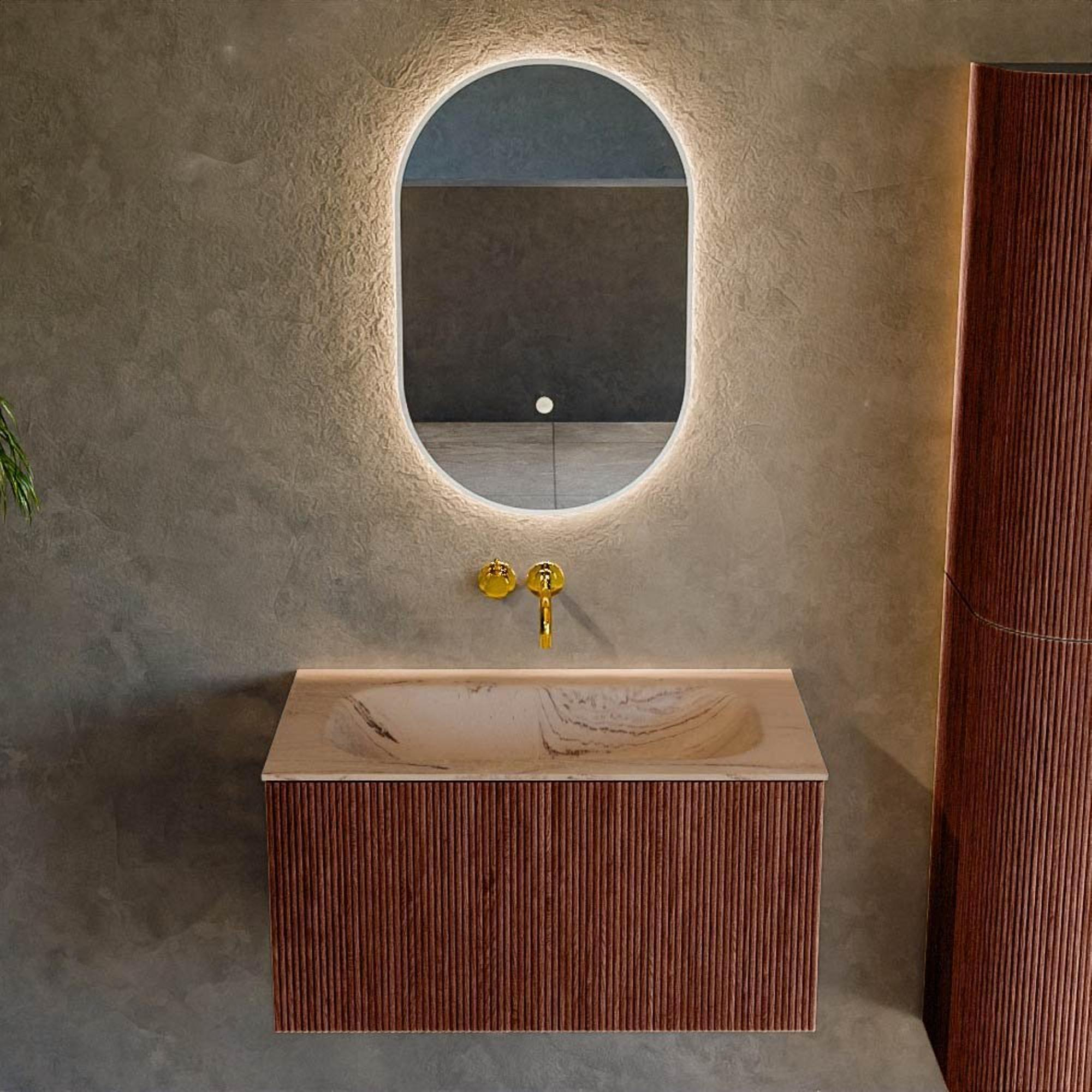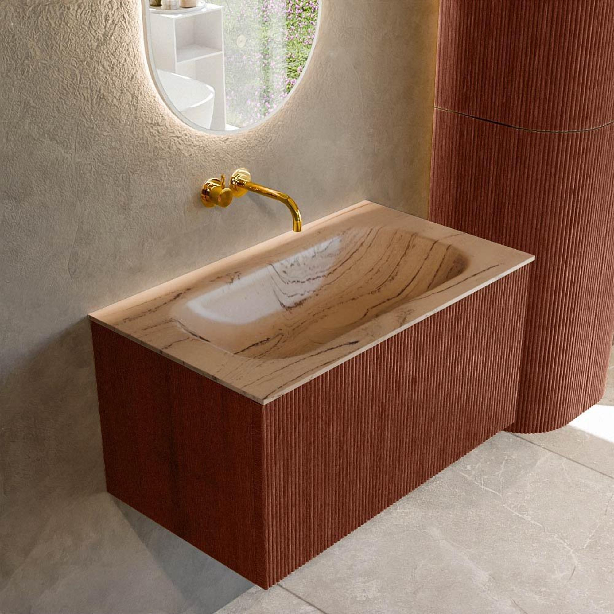 MONDIAZ KURVE-DLUX 80cm badmeubel kleur Ruby met 1 lade en 0 deuren. Wastafel BIG SMALL Midden zonder kraangat Arena.