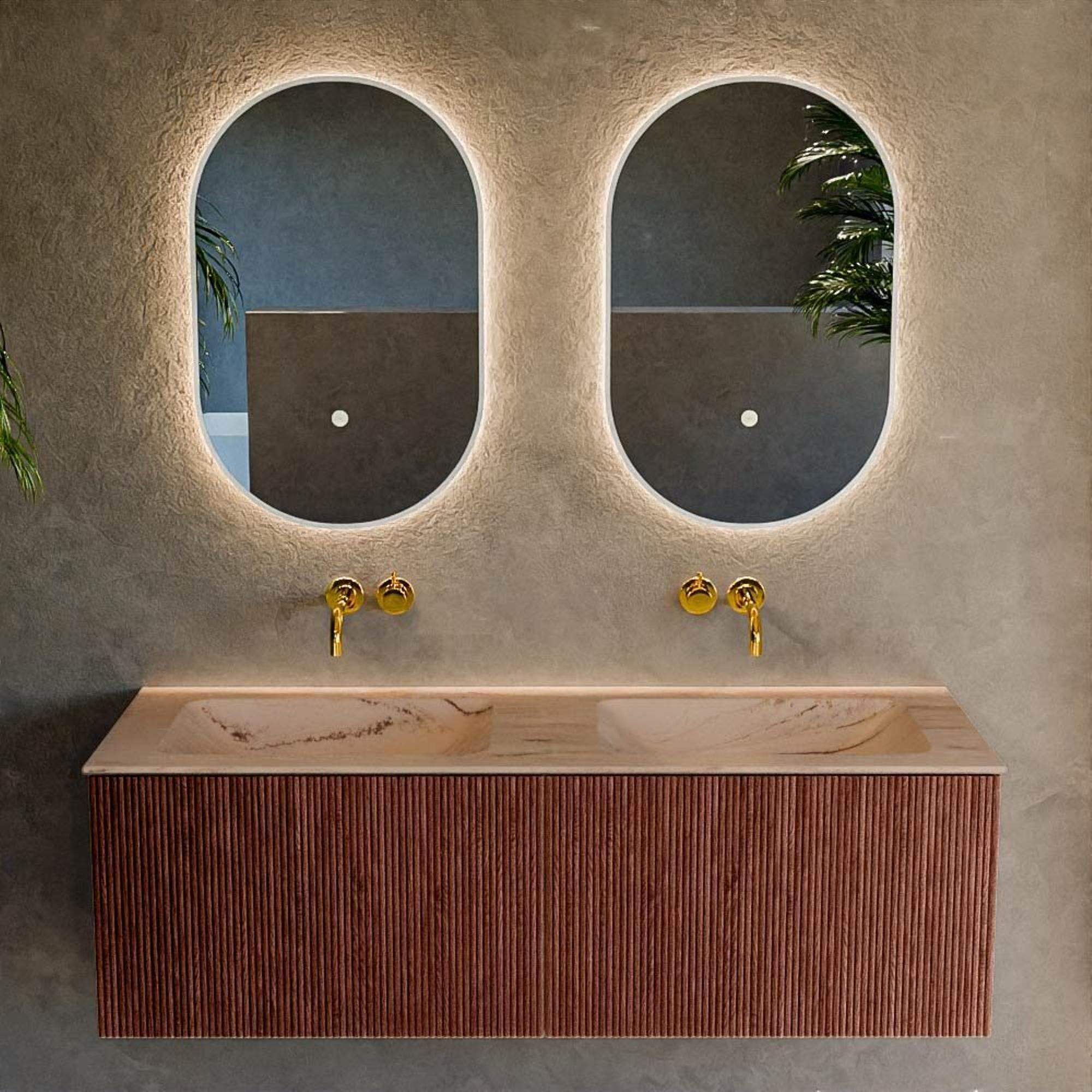 MONDIAZ KURVE-DLUX 130cm badmeubel kleur Ruby met 2 lades en 0 deuren. Wastafel LEAF Dubbel zonder kraangat Arena.