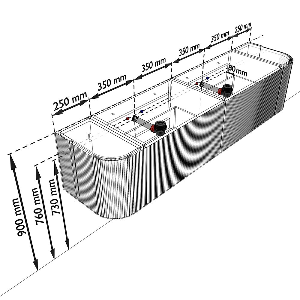 MONDIAZ KURVE-DLUX 190cm badmeubel ronding Links + Rechts kleur Walnut met 2 lades en 2 deuren. Wastafel STOR SMALL Dubbel 2 kraangaten Meli.