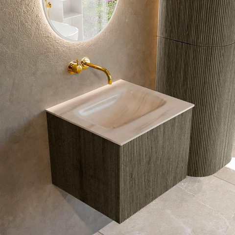 MONDIAZ KURVE-DLUX 50cm badmeubel kleur Shadow met 1 lade en 0 deuren. Wastafel GRUNNE Midden zonder kraangat Meli.
