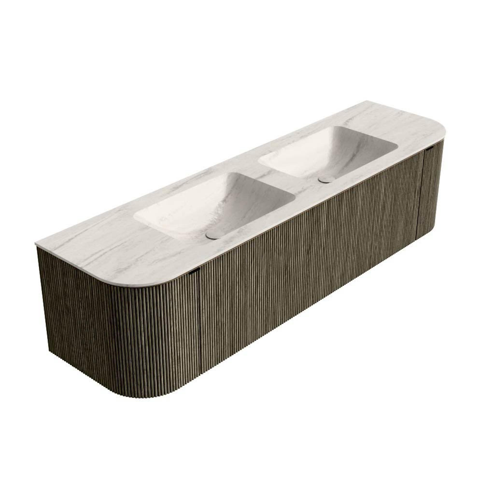 MONDIAZ KURVE-DLUX 170cm badmeubel ronding Links + Rechts kleur Shadow met 1 lade en 2 deuren. Wastafel LEAF Dubbel zonder kraangat Meli.