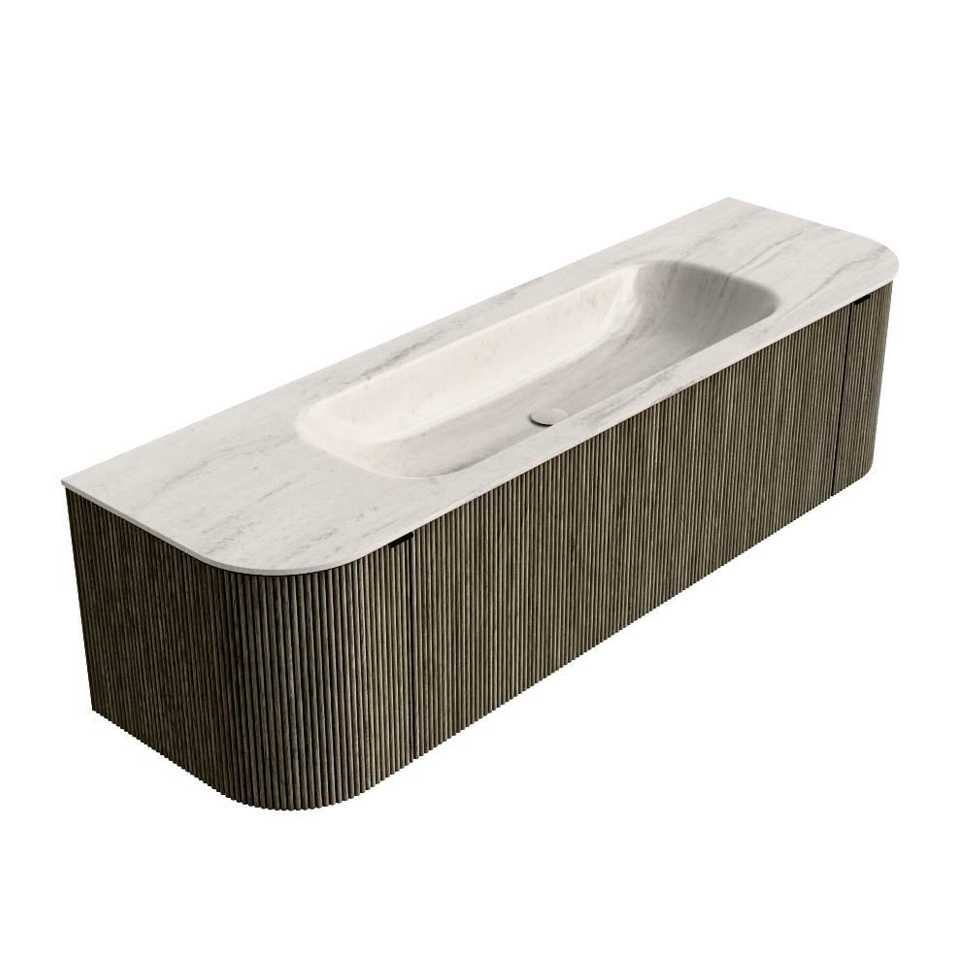 MONDIAZ KURVE-DLUX 160cm badmeubel ronding Links + Rechts kleur Shadow met 1 lade en 2 deuren. Wastafel BIG MEDIUM Midden zonder kraangat Meli.