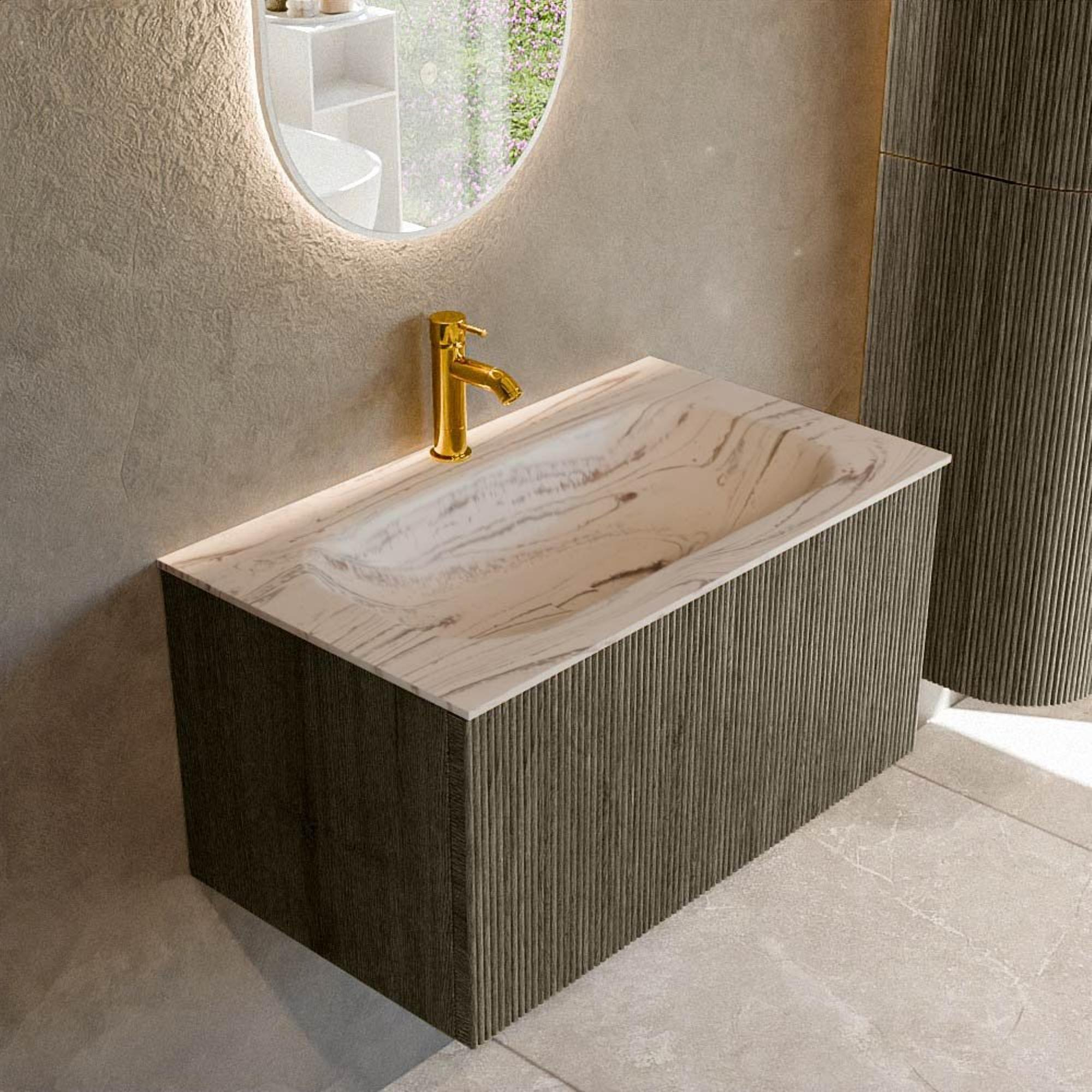 MONDIAZ KURVE-DLUX 80cm badmeubel kleur Shadow met 1 lade en 0 deuren. Wastafel BIG SMALL Midden 1 kraangat Nata.