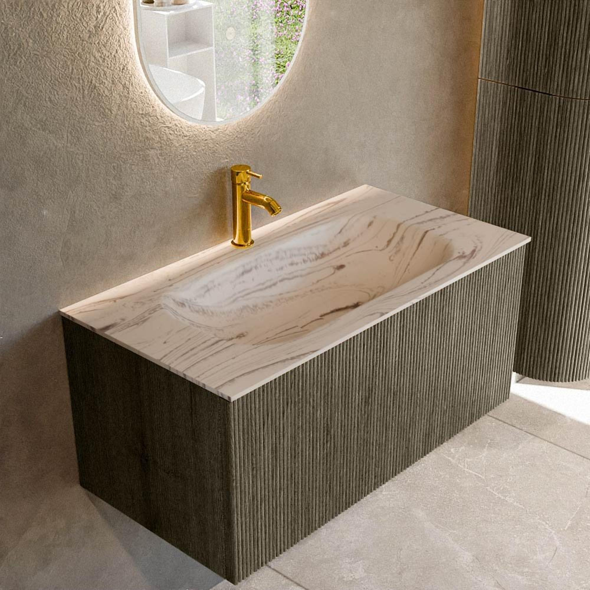 MONDIAZ KURVE-DLUX 90cm badmeubel kleur Shadow met 1 lade en 0 deuren. Wastafel BIG SMALL Midden 1 kraangat Nata.