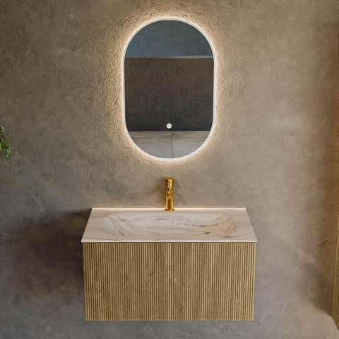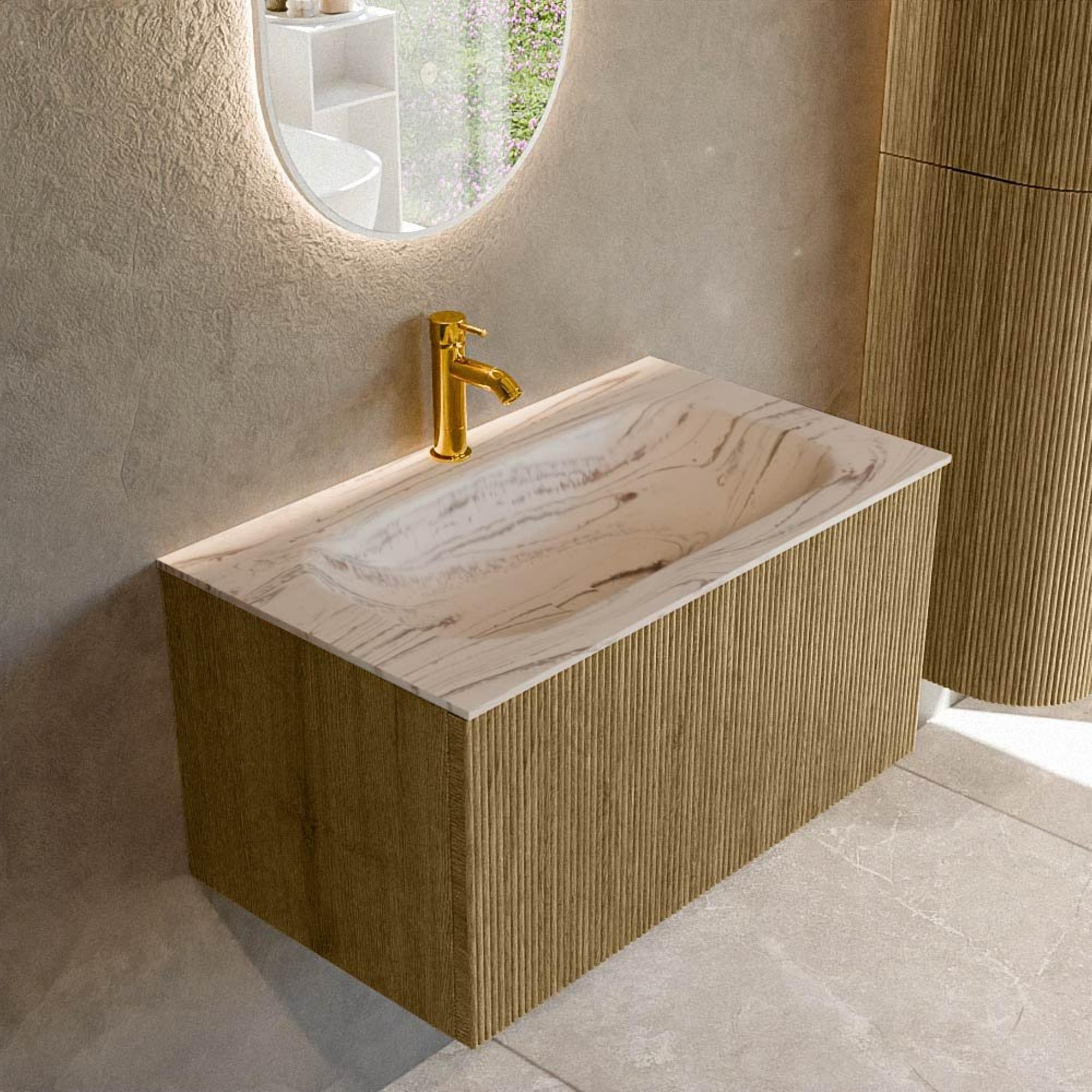 MONDIAZ KURVE-DLUX 80cm badmeubel kleur Dusk met 1 lade en 0 deuren. Wastafel BIG SMALL Midden 1 kraangat Nata.