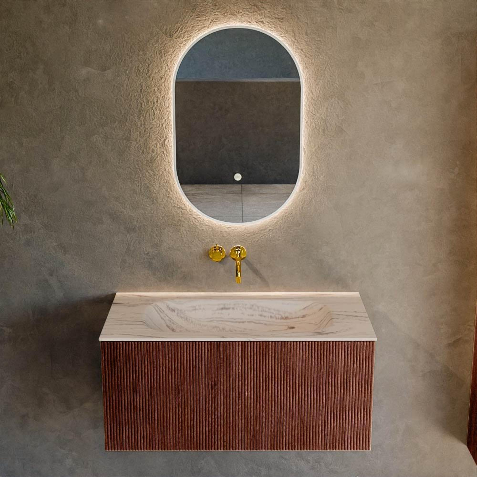 MONDIAZ KURVE-DLUX 90cm badmeubel kleur Ruby met 1 lade en 0 deuren. Wastafel BIG SMALL Midden zonder kraangat Nata.