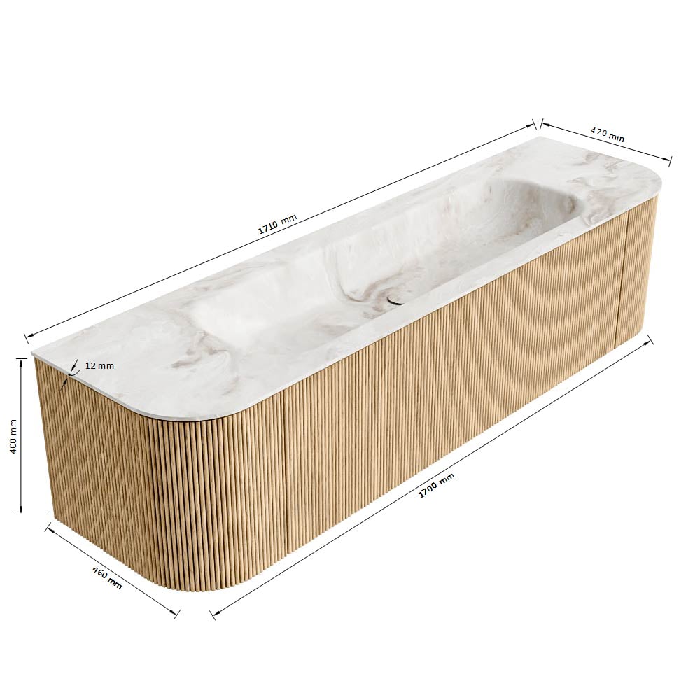 MONDIAZ KURVE-DLUX 170cm badmeubel ronding Links + Rechts kleur Ruby met 1 lade en 2 deuren. Wastafel BIG LARGE Midden 2 kraangaten Nata.