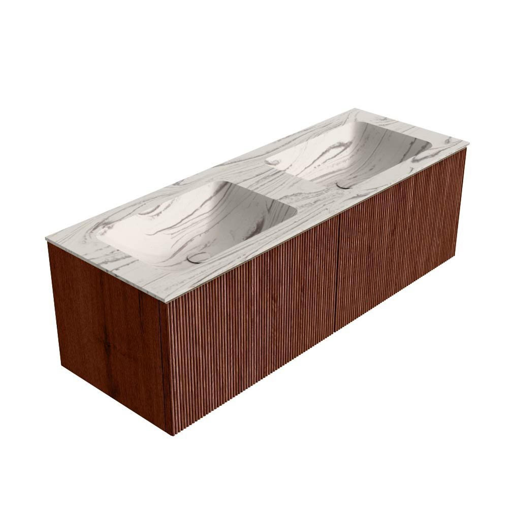 MONDIAZ KURVE-DLUX 130cm badmeubel kleur Ruby met 2 lades en 0 deuren. Wastafel LEAF Dubbel 2 kraangaten Nata.