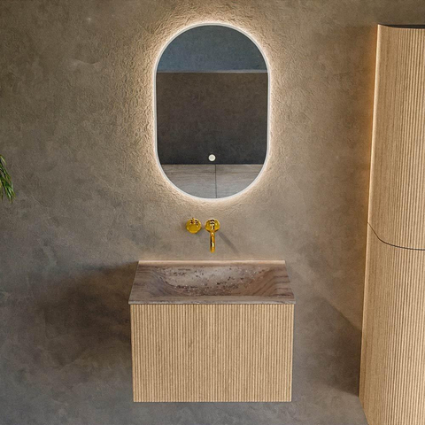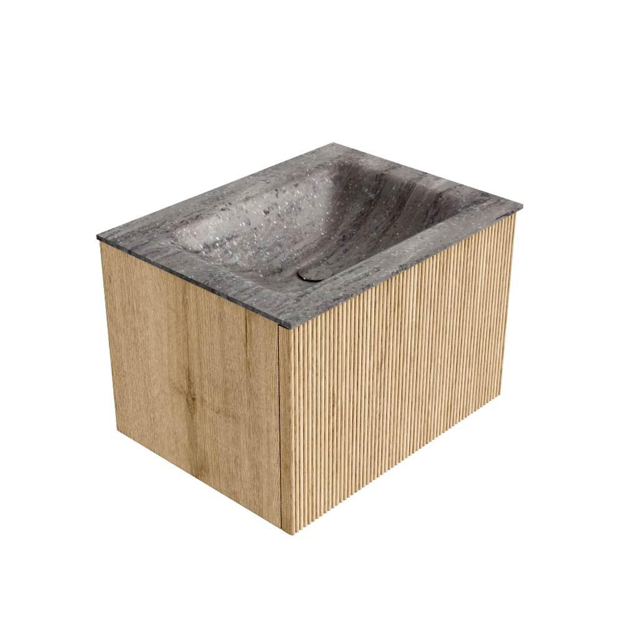 MONDIAZ KURVE-DLUX 60cm badmeubel kleur Oak met 1 lade en 0 deuren. Wastafel CLOUD Midden zonder kraangat Oza.