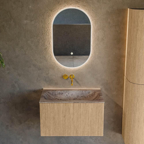 MONDIAZ KURVE-DLUX 70cm badmeubel kleur Oak met 1 lade en 0 deuren. Wastafel BIG SMALL Midden zonder kraangat Oza.