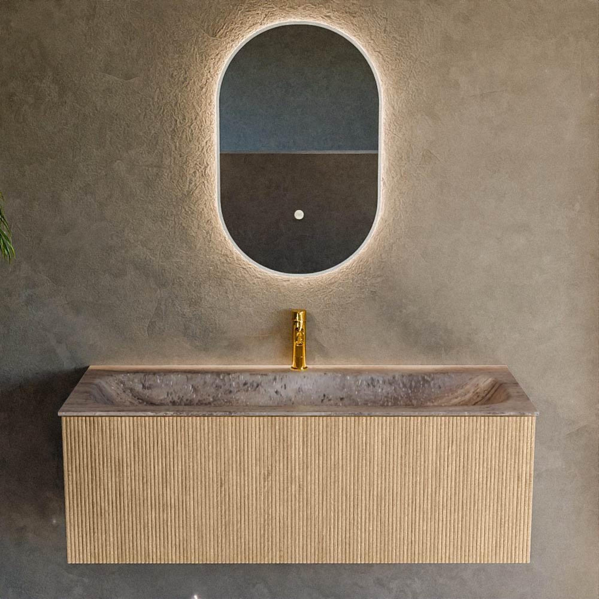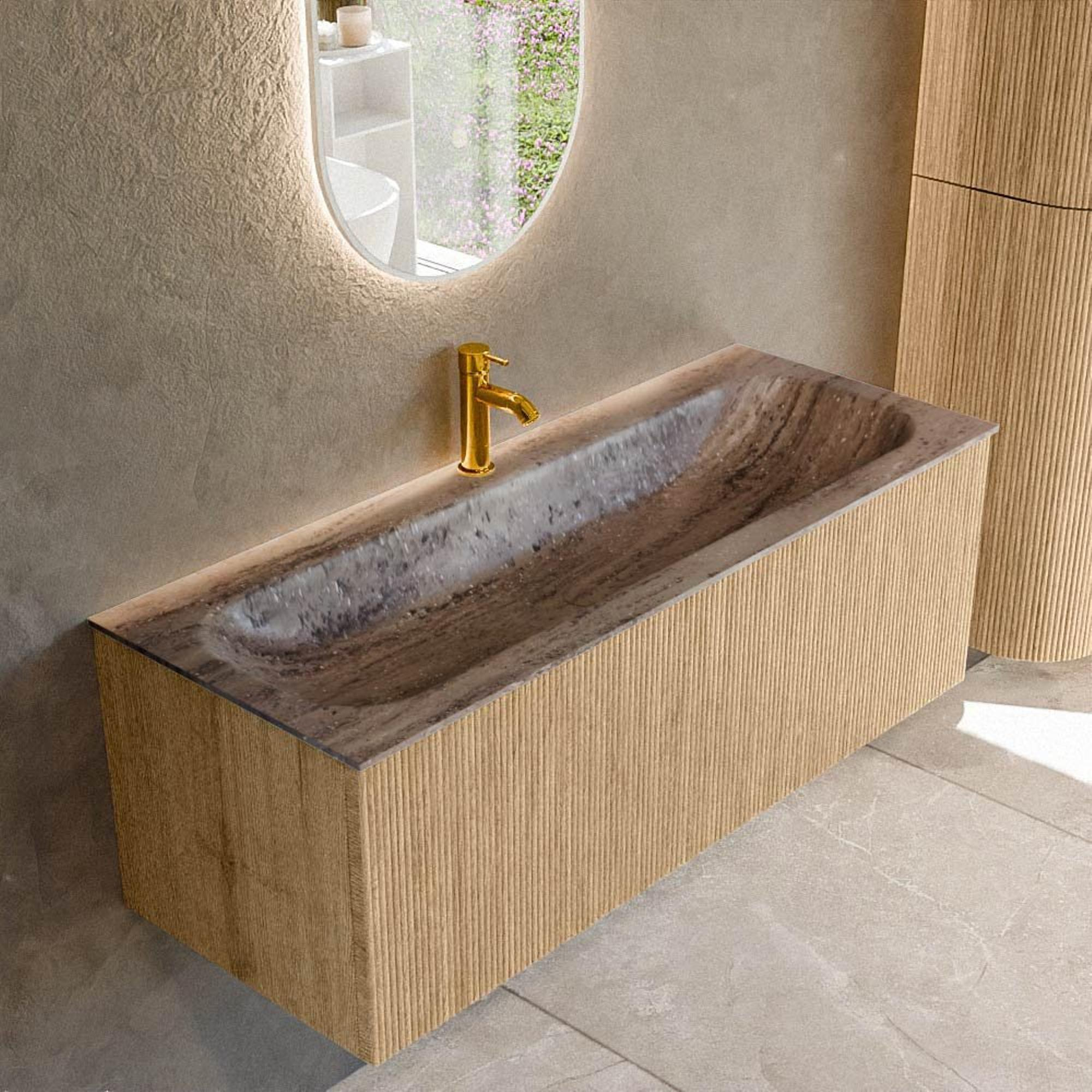 MONDIAZ KURVE-DLUX 120cm badmeubel kleur Oak met 1 lade en 0 deuren. Wastafel BIG LARGE Midden 1 kraangat Oza.
