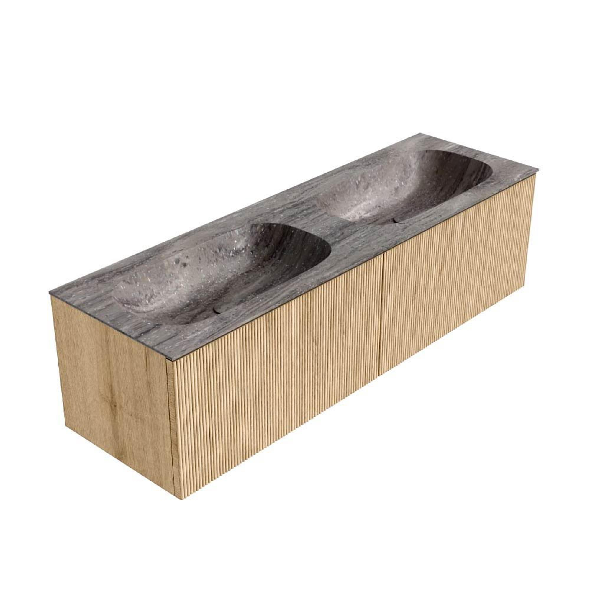 MONDIAZ KURVE-DLUX 150cm badmeubel kleur Oak met 2 lades en 0 deuren. Wastafel STOR SMALL Dubbel zonder kraangat Oza.