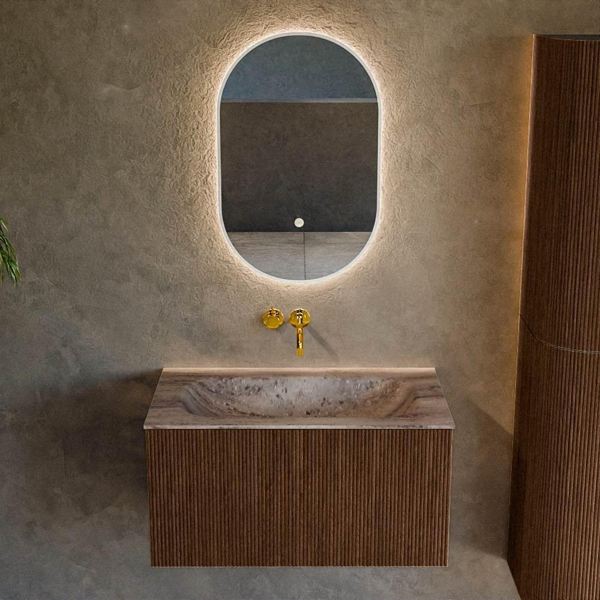 MONDIAZ KURVE-DLUX 80cm badmeubel kleur Walnut met 1 lade en 0 deuren. Wastafel BIG SMALL Midden zonder kraangat Oza.