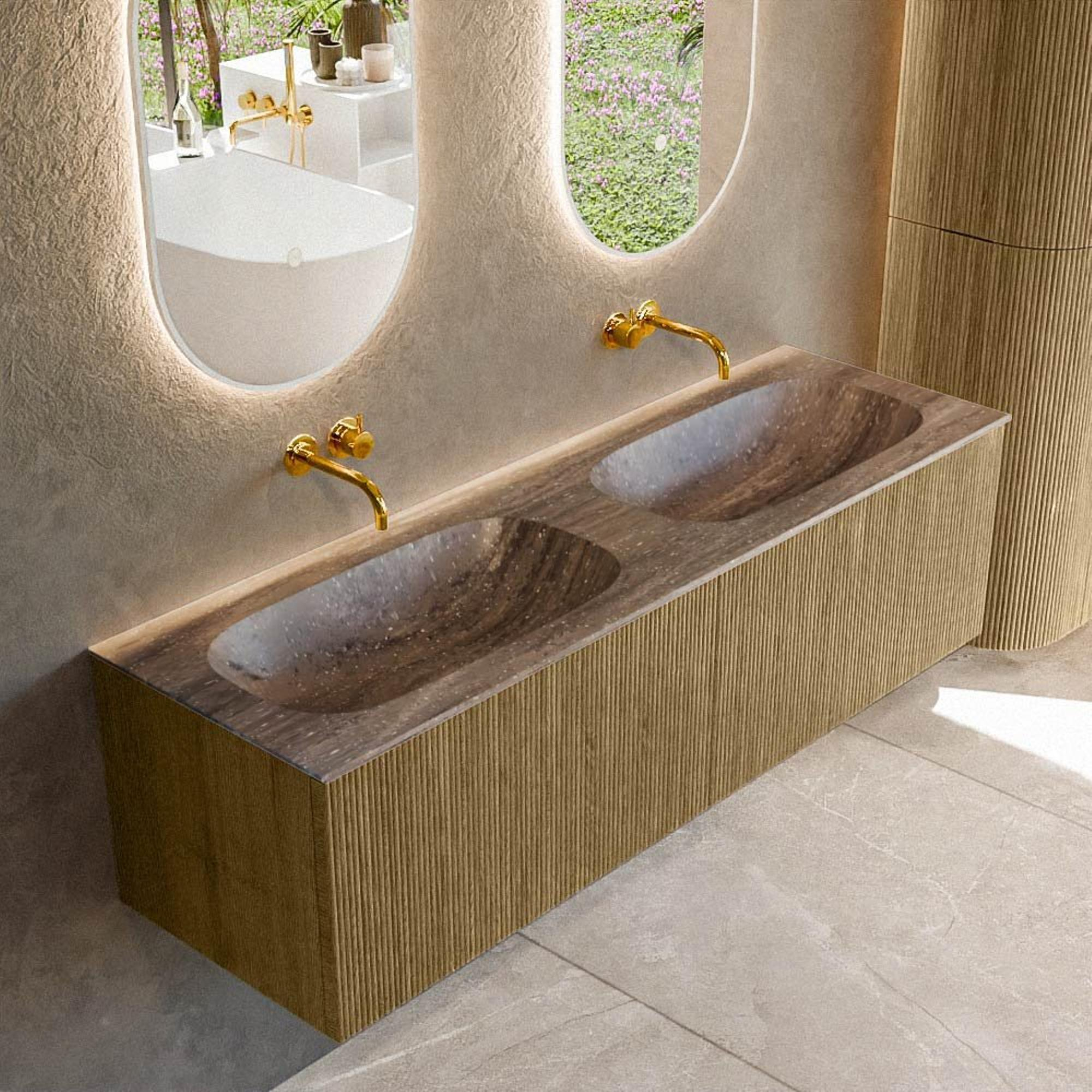 MONDIAZ KURVE-DLUX 150cm badmeubel kleur Dusk met 2 lades en 0 deuren. Wastafel STOR SMALL Dubbel zonder kraangat Oza.