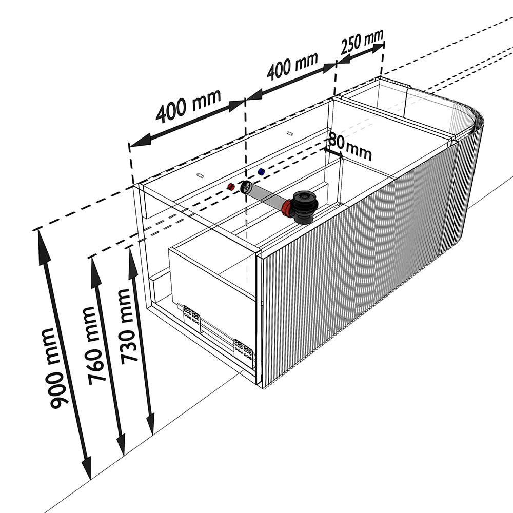 MONDIAZ KURVE-DLUX 105cm badmeubel ronding Rechts kleur Ruby met 1 lade en 1 deur. Wastafel BIG SMALL Links 1 kraangat Oza.