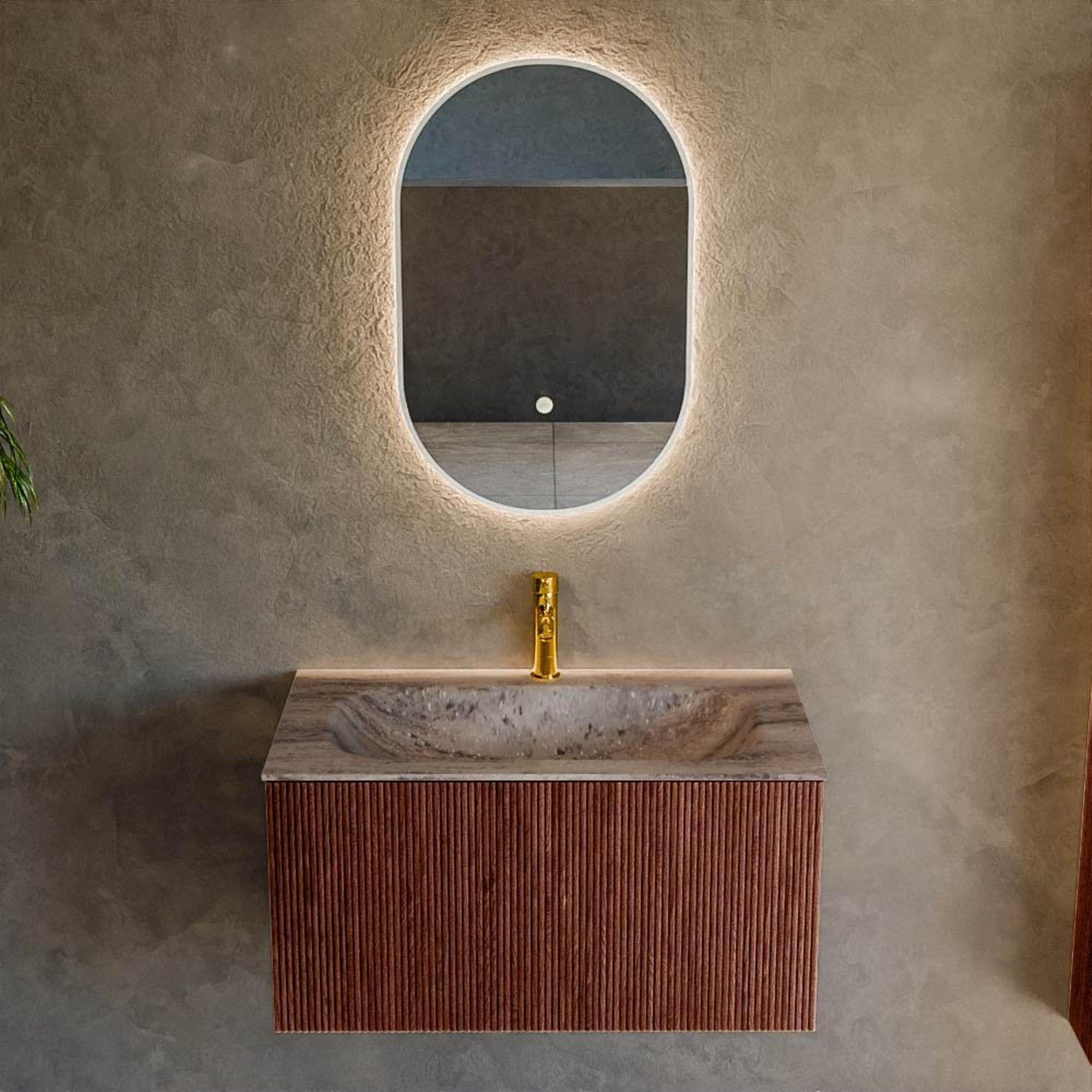 MONDIAZ KURVE-DLUX 80cm badmeubel kleur Ruby met 1 lade en 0 deuren. Wastafel BIG SMALL Midden 1 kraangat Oza.