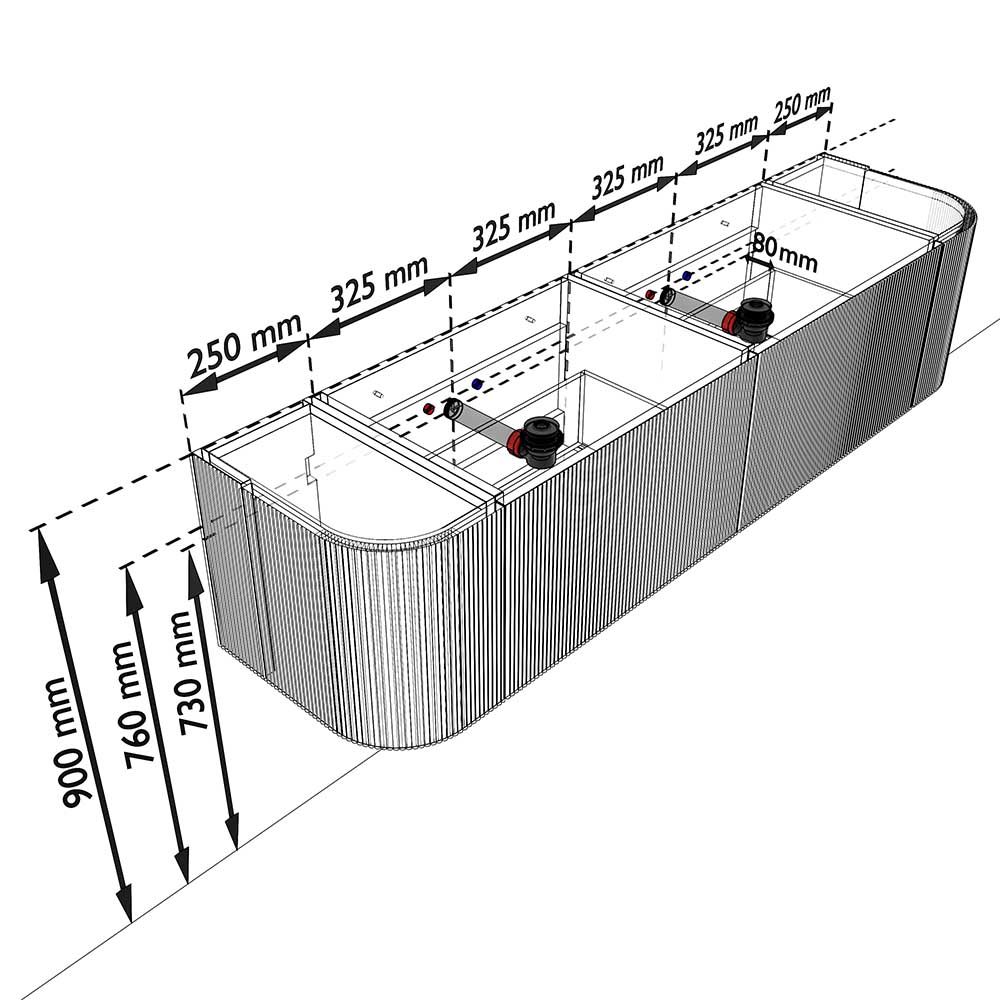 MONDIAZ KURVE-DLUX 180cm badmeubel ronding Links + Rechts kleur Ruby met 2 lades en 2 deuren. Wastafel LEAF Dubbel zonder kraangat Oza.