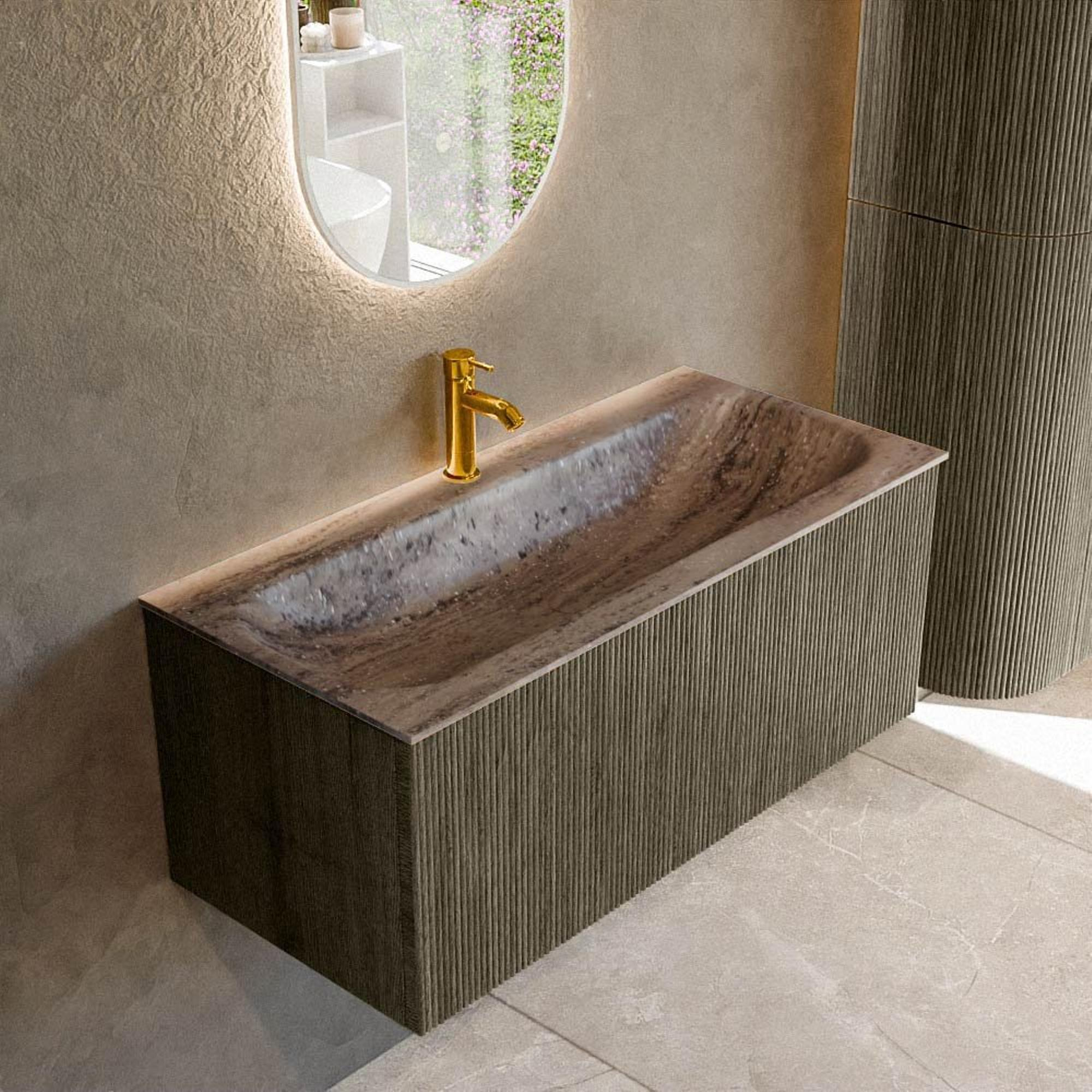 MONDIAZ KURVE-DLUX 100cm badmeubel kleur Shadow met 1 lade en 0 deuren. Wastafel BIG MEDIUM Midden 1 kraangat Oza.