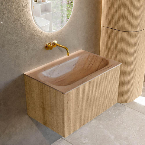 MONDIAZ KURVE-DLUX 70cm badmeubel kleur Oak met 1 lade en 0 deuren. Wastafel BIG SMALL Midden zonder kraangat Saba.