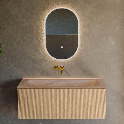 MONDIAZ KURVE-DLUX 110cm badmeubel kleur Oak met 1 lade en 0 deuren. Wastafel BIG MEDIUM Midden zonder kraangat Saba.