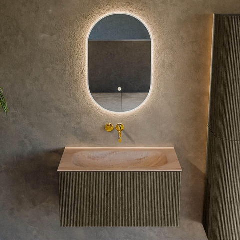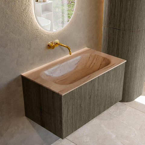 MONDIAZ KURVE-DLUX 80cm badmeubel kleur Shadow met 1 lade en 0 deuren. Wastafel BIG SMALL Midden zonder kraangat Saba.