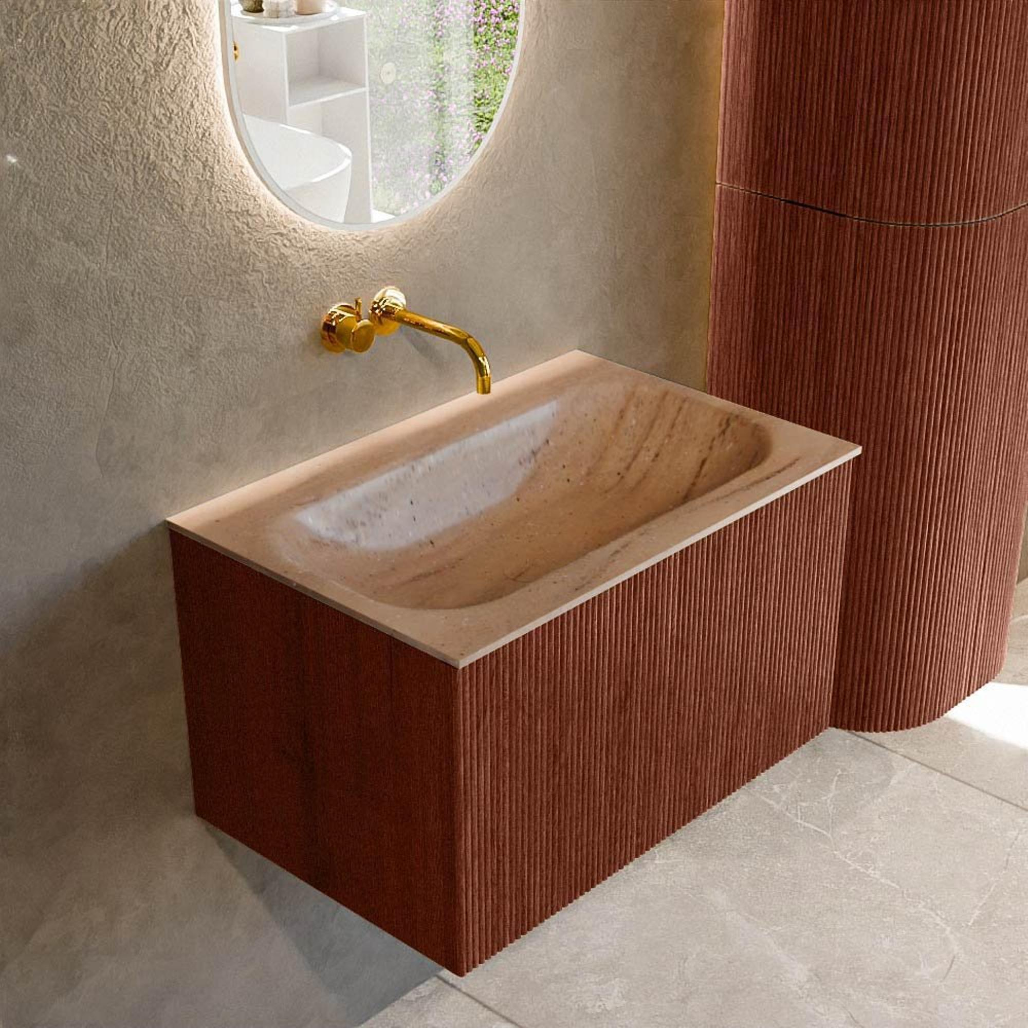 MONDIAZ KURVE-DLUX 70cm badmeubel kleur Ruby met 1 lade en 0 deuren. Wastafel BIG SMALL Midden zonder kraangat Saba.