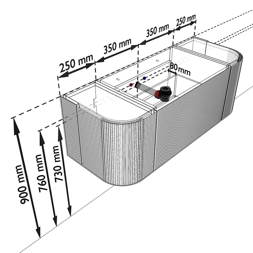 MONDIAZ KURVE-DLUX 120cm badmeubel ronding Links + Rechts kleur Ruby met 1 lade en 2 deuren. Wastafel BIG SMALL Midden 1 kraangat Saba.