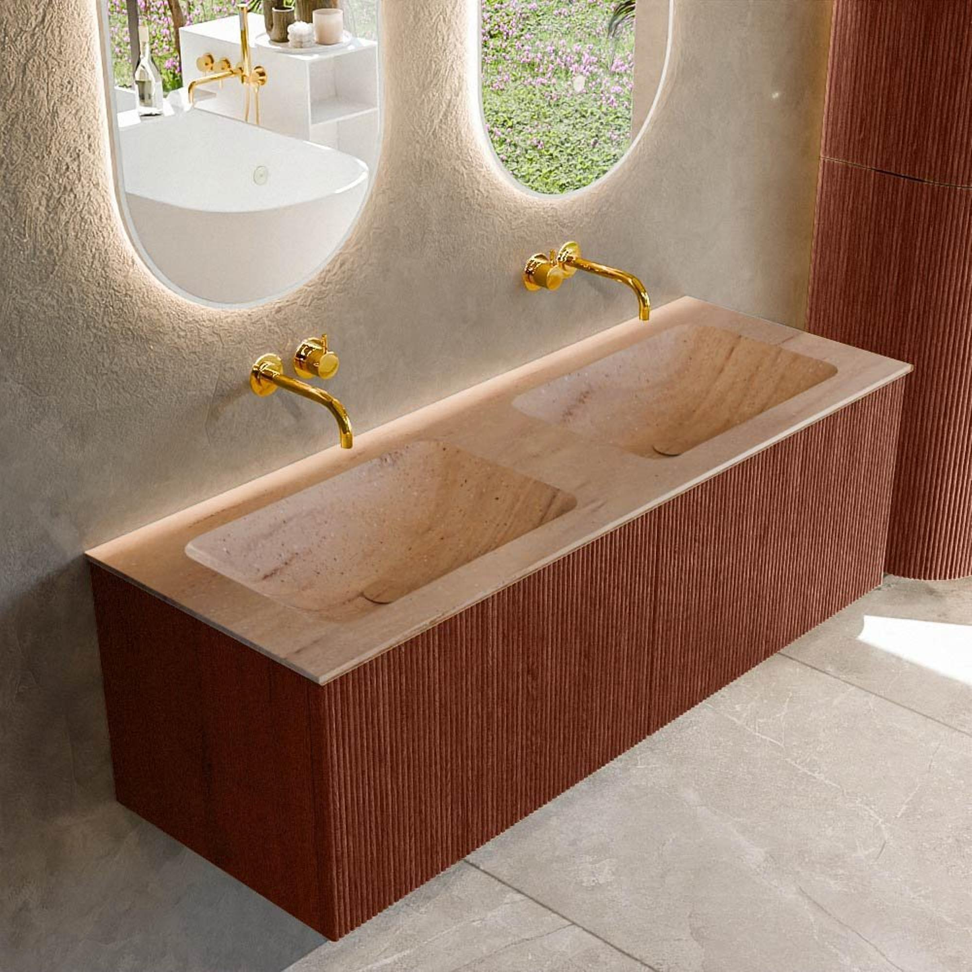 MONDIAZ KURVE-DLUX 130cm badmeubel kleur Ruby met 2 lades en 0 deuren. Wastafel LEAF Dubbel zonder kraangat Saba.