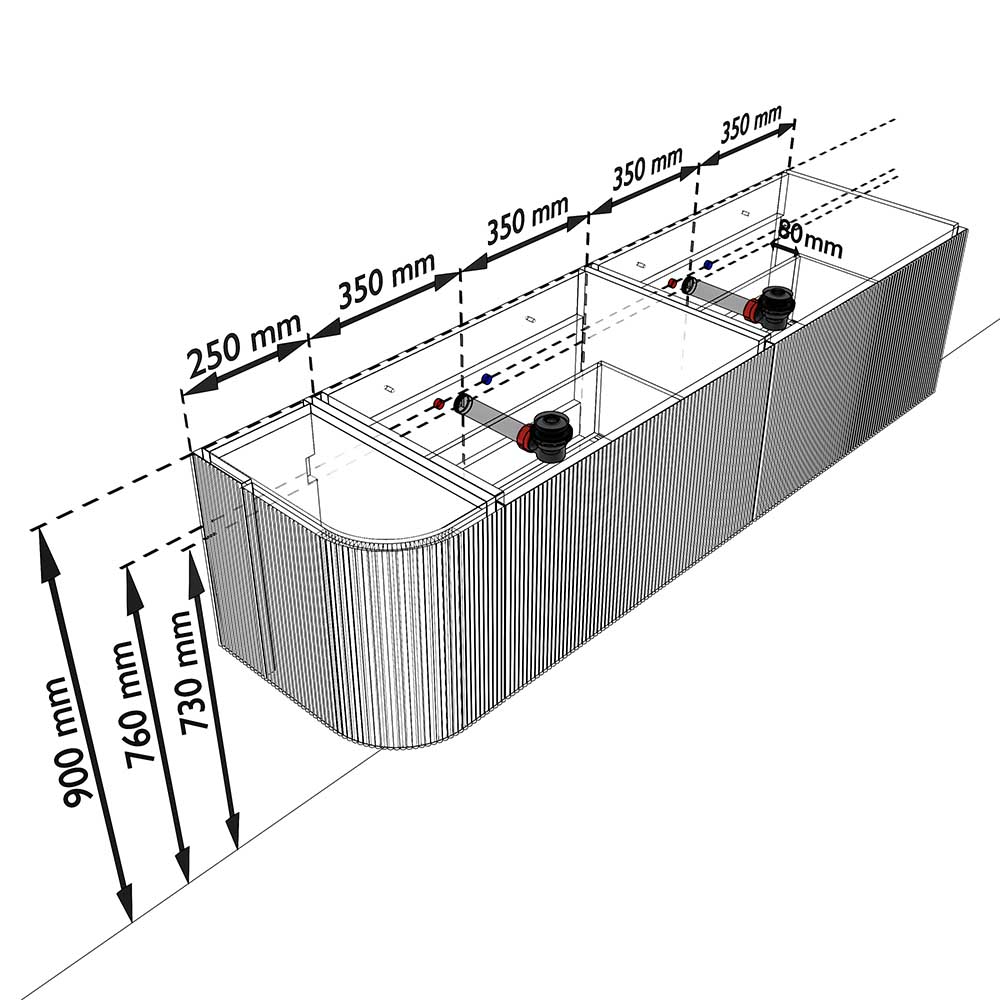 MONDIAZ KURVE-DLUX 165cm badmeubel ronding Links kleur Ruby met 2 lades en 1 deur. Wastafel STOR SMALL Dubbel / Rechts zonder kraangat Saba.