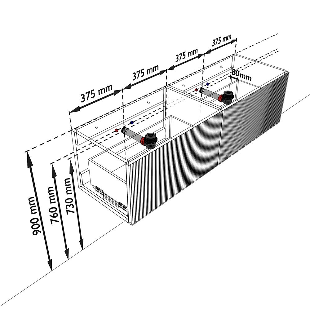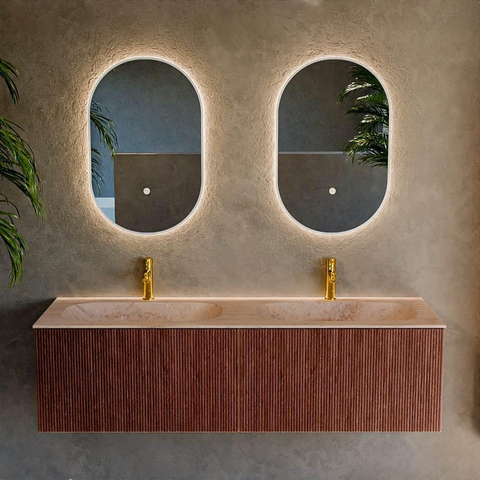 MONDIAZ KURVE-DLUX 150cm badmeubel kleur Ruby met 2 lades en 0 deuren. Wastafel STOR SMALL Dubbel 2 kraangaten Saba.