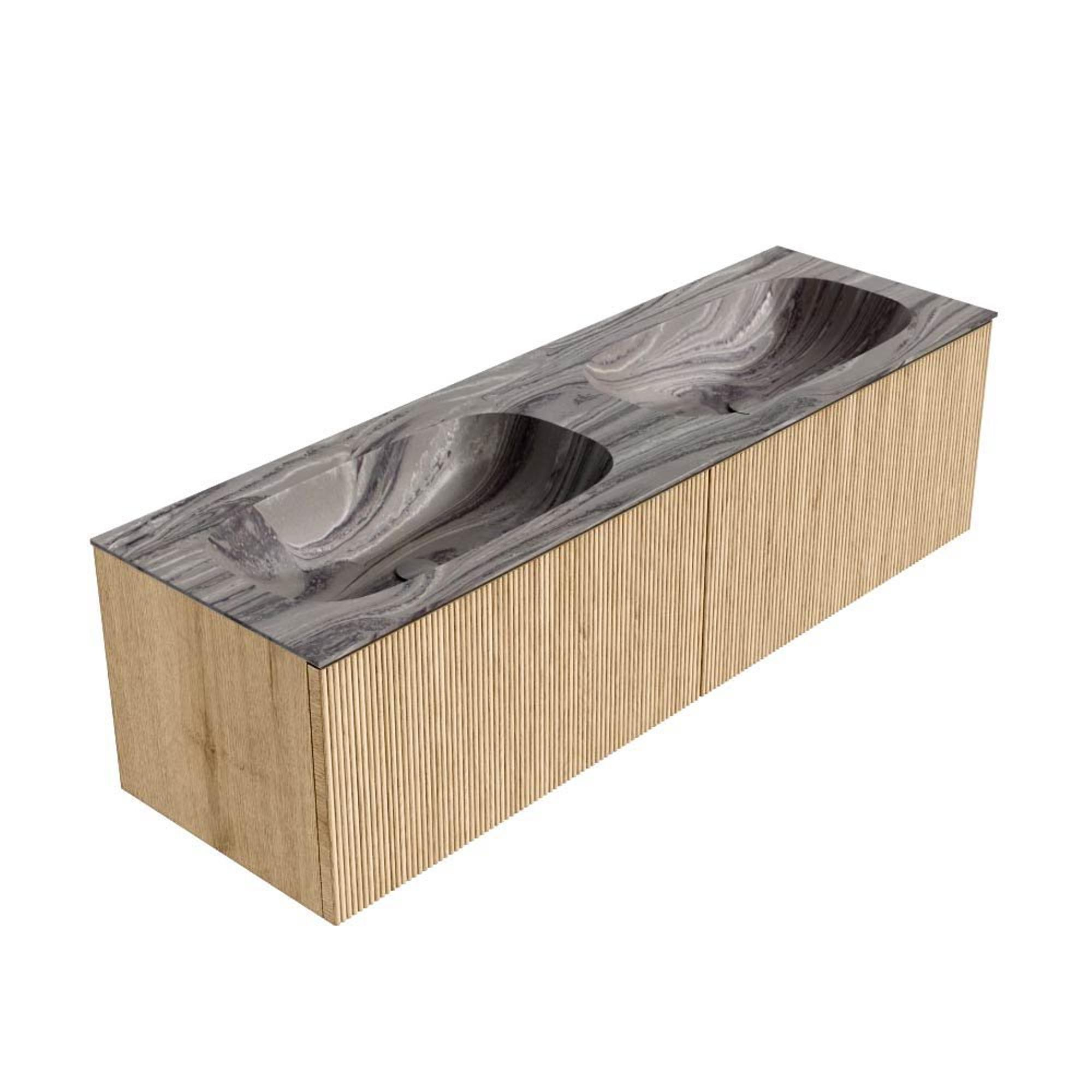 MONDIAZ KURVE-DLUX 150cm badmeubel kleur Oak met 2 lades en 0 deuren. Wastafel STOR SMALL Dubbel zonder kraangat Sombra.