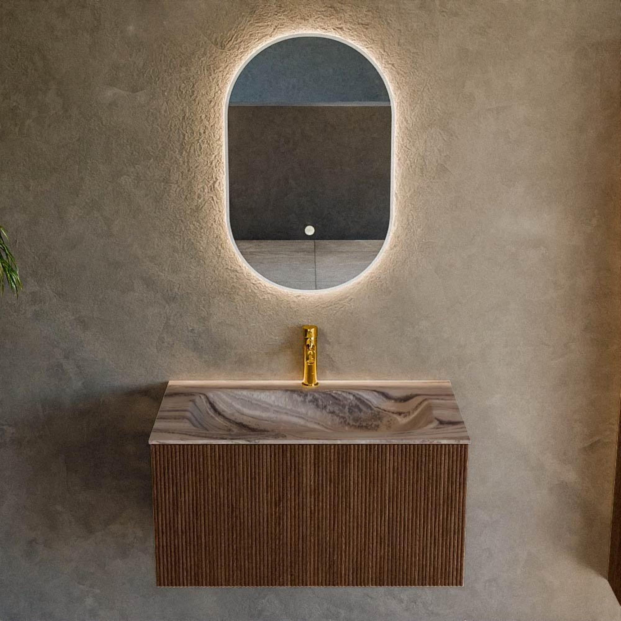 MONDIAZ KURVE-DLUX 80cm badmeubel kleur Walnut met 1 lade en 0 deuren. Wastafel BIG SMALL Midden 1 kraangat Sombra.