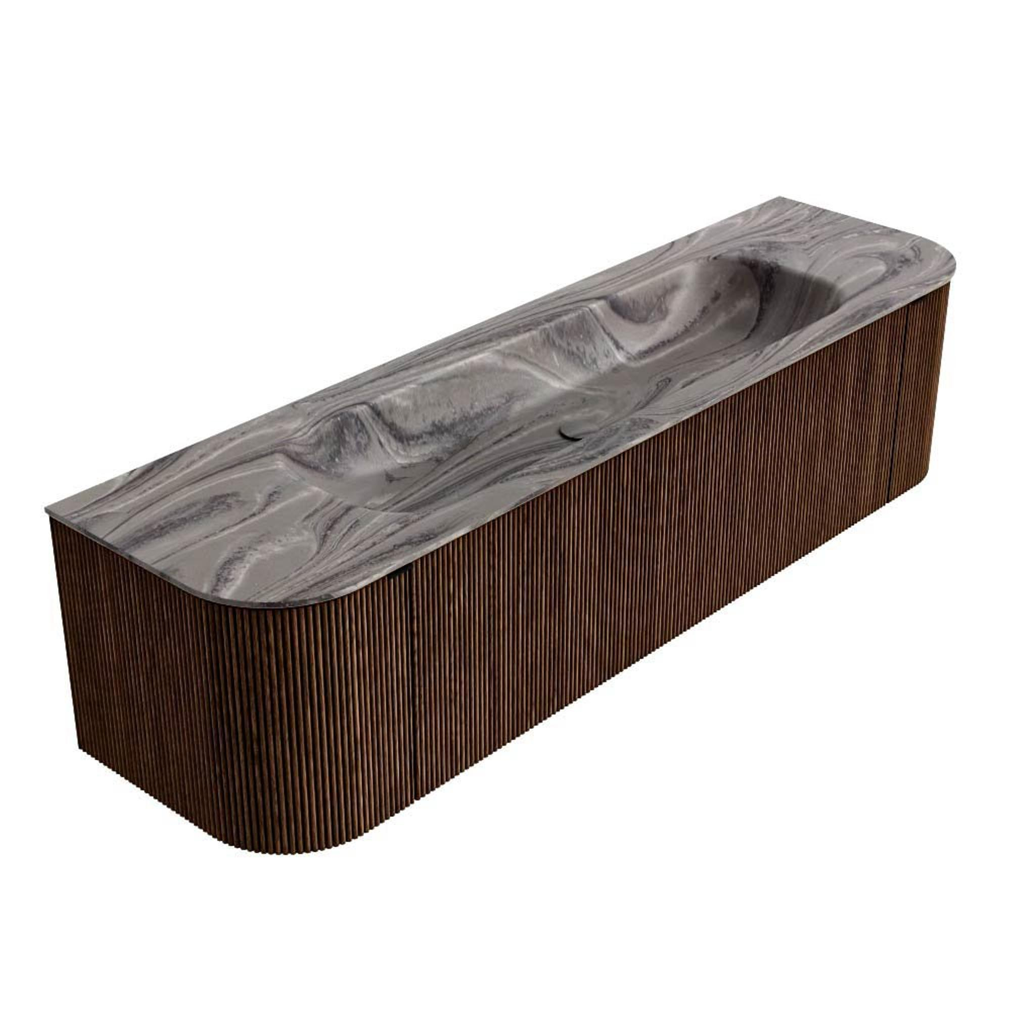 MONDIAZ KURVE-DLUX 170cm badmeubel ronding Links + Rechts kleur Walnut met 1 lade en 2 deuren. Wastafel BIG LARGE Midden zonder kraangat Sombra.