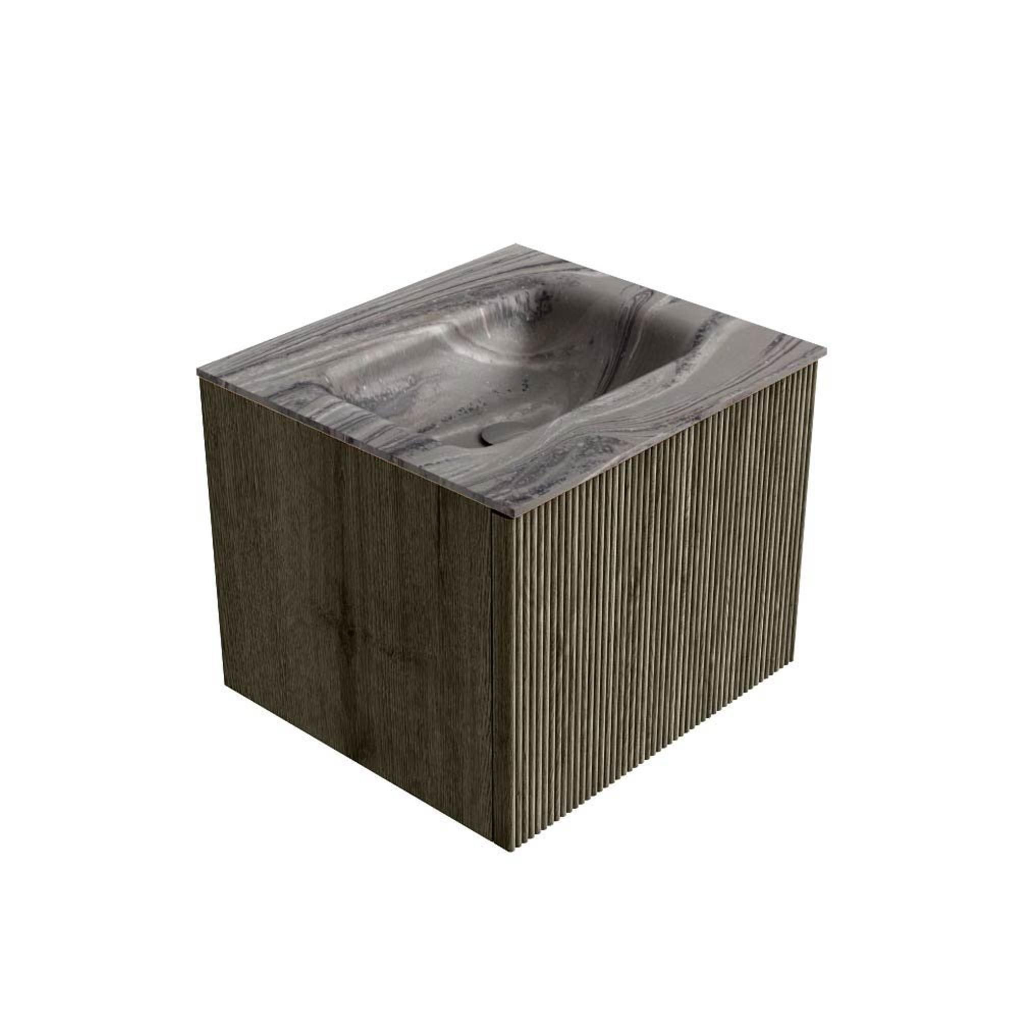 MONDIAZ KURVE-DLUX 50cm badmeubel kleur Shadow met 1 lade en 0 deuren. Wastafel GRUNNE Midden zonder kraangat Sombra.